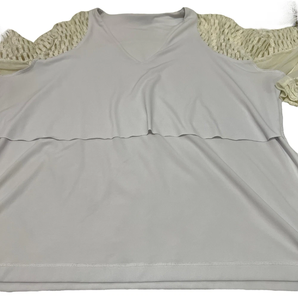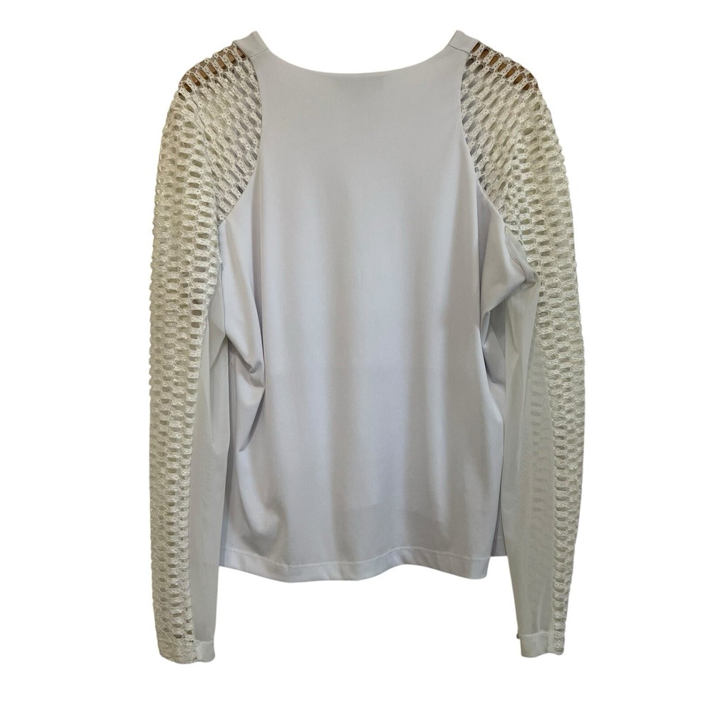 Anatomie White V-Neck Long Sleeve Mesh & Lace Top Women’s XL