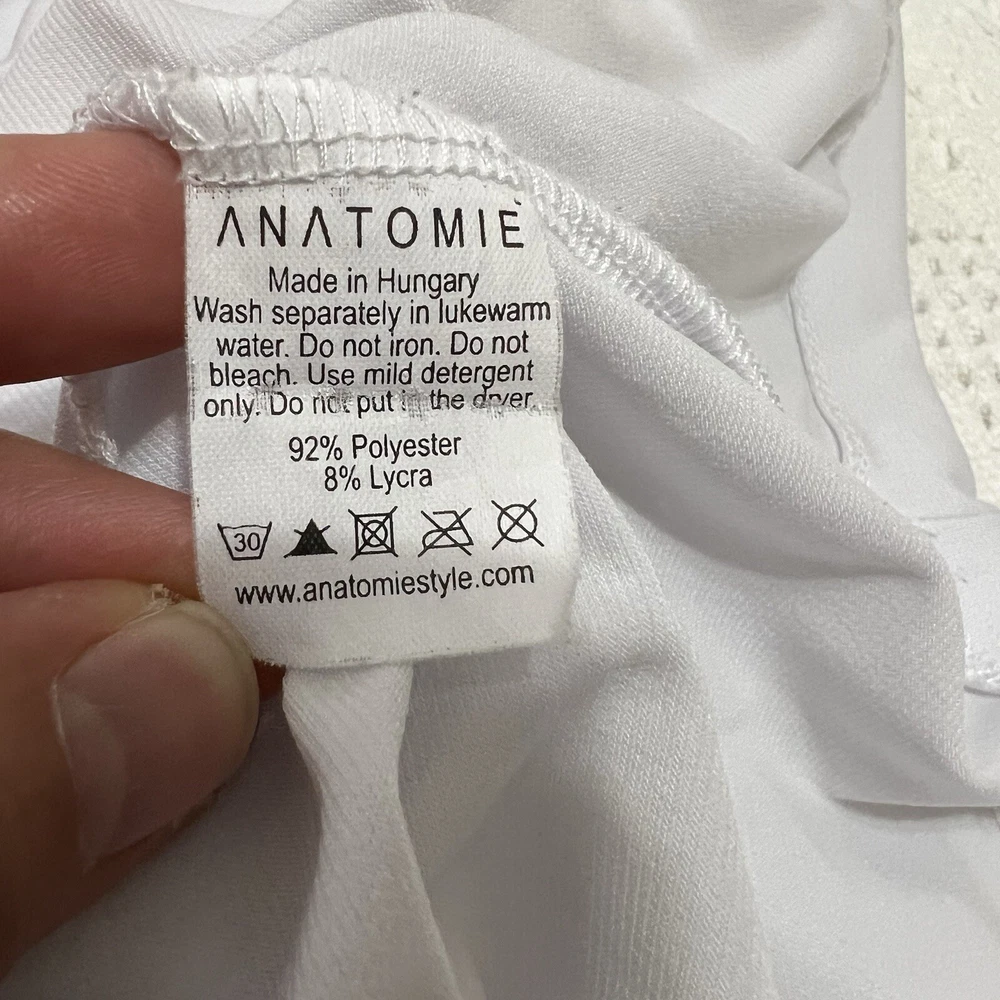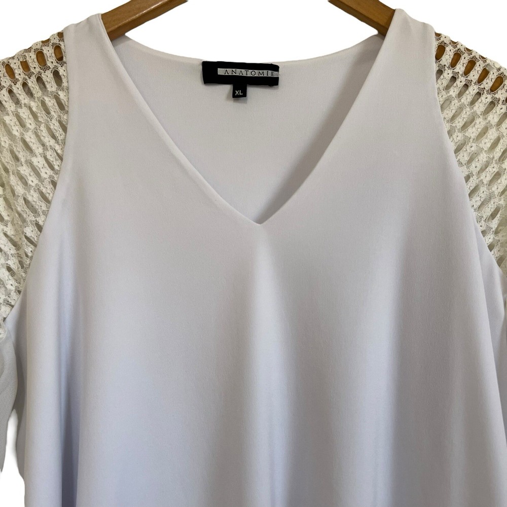Brand: Anatomie Pattern: Solid Type: Blouse Size Type: Regular Material: Polyester, Lycra Closure: Pullover Style: Basic Accents: Lace, Mesh Department: Women Season: Fall, Spring, Summer Fabric Type: Jersey Neckline: V-Neck Occasion: Casual, Party/Cocktail, Travel, Workwear Sleeve Type: Classic/Fitted Sleeve Theme: Bohemian, City, Classic, Designer, Travel, Athleisure Color: White Country/Region of Manufacture: Hungary Garment Care: Machine Washable Size: XL Features: Breathable, Lightweight, Lined, Stretch Sleeve Length: Long Sleeve
