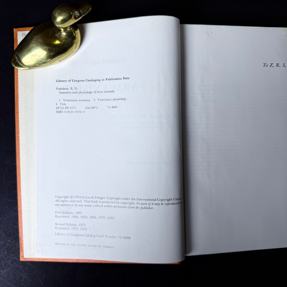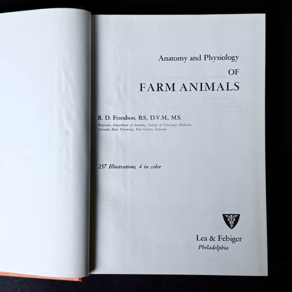 Anatomy and Physiology of Farm Animals by R. D. Frandson Second Edition 1976 ~ ~ ~ Please examine the photos closely. They are an important part of the description and represent the exact item you will receive. I am happy to answer specific questions about this book or any item in my store. I ship daily both within the US and Internationally. All orders are wrapped with care to arrive safely.
