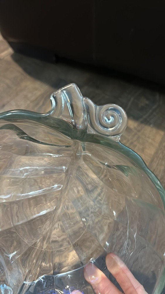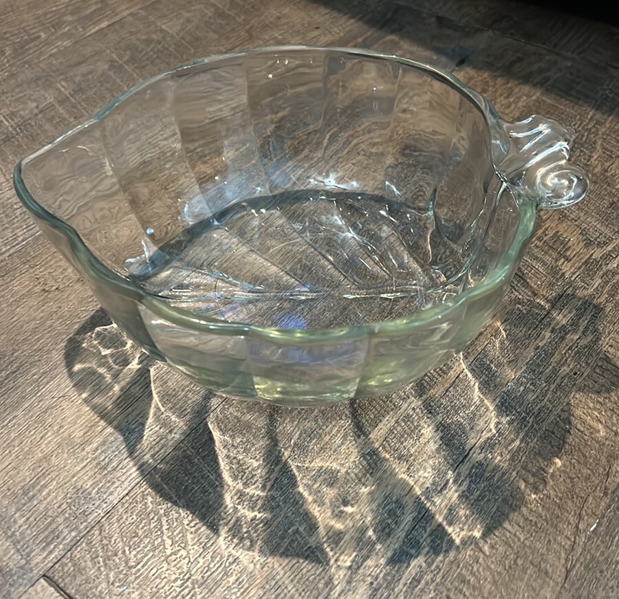 Vintage Anchor Hocking Clear Pumpkin Leaf Shaped Serving Salad Fruit Bowl Vintage Clear Glass Leaf Shaped Serving Bowl Dish. No Maker's Mark