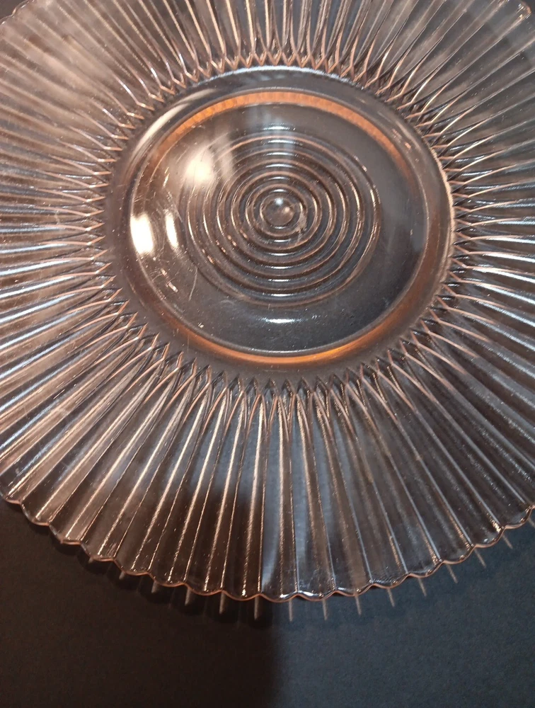 Add a touch of vintage elegance to your serving collection with this Anchor Hocking Pink Depression Glass Serving Plate. Ribbed in design and measuring 10.5 inches, this platter showcases the timeless beauty of mid 20th century glassware. Its polished finish enhances the classic charm of this pressed glass piece, making it a standout addition to any table setting. Crafted in the United States during the 1940s, this original piece embodies the essence of depression glass. Its round shape and fusion of style and functionality reflect the era's craftsmanship. Ideal for all occasions, this serving plate is a lovely reminder of America's rich glassmaking heritage.