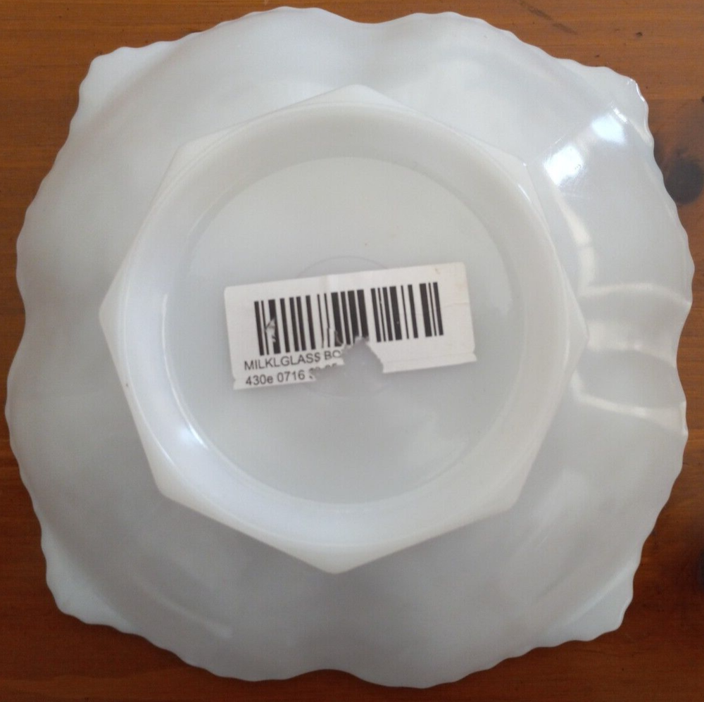 Explore the timeless elegance of the Anchor Hocking Scalloped Edge Milk Glass Bowl, a piece that brings a touch of vintage charm to any setting. The bowl features a beautiful grape leaf design, exuding a mid-century modern aesthetic that is perfect for those who appreciate classic styles. With an item width and diameter of 8-1/2 inches, this bowl is the ideal size for a variety of uses, from serving fruit to displaying decor. Crafted in the United States, this decorative bowl is made of glossy milk glass, showcasing a fusion of durability and beauty. The square shape and 1 lb 6.1 oz weight gives it a substantial feel, while the hand wash only care ensures its preservation. Whether for everyday use or special occasions, this original piece from the Paneled Grape product line adds both function and flair to your home.