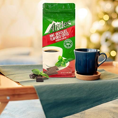 Andes Coffee Flavored Ground Coffee Bag Premium Arabica, Chocolate Mint, 12 Ounc We have blended two classic after-dinner treats to come together in one delicious mint-chocolaty bag. When the fresh, cool flavor of Andes mints combines with the rich bold taste of ground coffee, your taste buds will feel invigorated, no matter what time of day. Quality guarantee - 100% Premium Arabica Coffee beans. Great taste- small batch roasted coffee beans perfectly blended with Andes mints chocolate flavor. Limited Edition- this holiday season, send your favorite candy flavored coffee as a gift or enjoy them yourself. What ever The occasion, this coffee is sure to warm up the holiday season in all the right ways. 12 ounce bag – crafted with pride in the USA. When the fresh, cool flavor of Andes mints combines with the rich bold taste of ground coffee, your taste buds will feel invigorated, no matter what time of day.