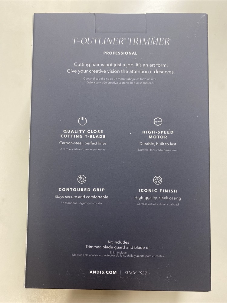 Andis Professional T-Outliner Beard & Hair Trimmer for Men with Carbon Steel T-Blade, Bump Free Technology – Corded Electric Beard Trimmer, Grey PROFESSIONAL TRIMMER: Use for crisp, clean lines, dry-shaving, and sharp edges with zero overlap blades. Works as a hair, beard, sideburns, and mustache trimmer. All-in-one device, suitable for all ages. POWERFUL: With an 8-foot electric cord for heavy-duty cutting and a high-torque rotary motor with quality machines drive components to allow for professional-grade shaving at home, produce minimum noise, and preserve long-term availability. BUMP FREE TECHNOLOGY: With diamond finished T blades feature provides dry trimming, zero overlaps, super-close, clean shave without causing razor bumps or irritation. STRONG CARBON T-BLADES: Blades are durable and stay sharp longer than other blades, maintaining long-term sharpness without pulling the hair, high-quality stainless steel blades provide smooth hair/beard trimming with total body grooming. PRODUCT DETAILS: This Professional Beard and Hair Trimmer is 1.75 x 1.5 x 5.25 inches and weighs 11.2 ounces. This T-Blade is made of Alloy Steel with a Heavy-duty 8ft cord with a hanger loop for durability or longevity, suitable for the whole family home use and outside travel.