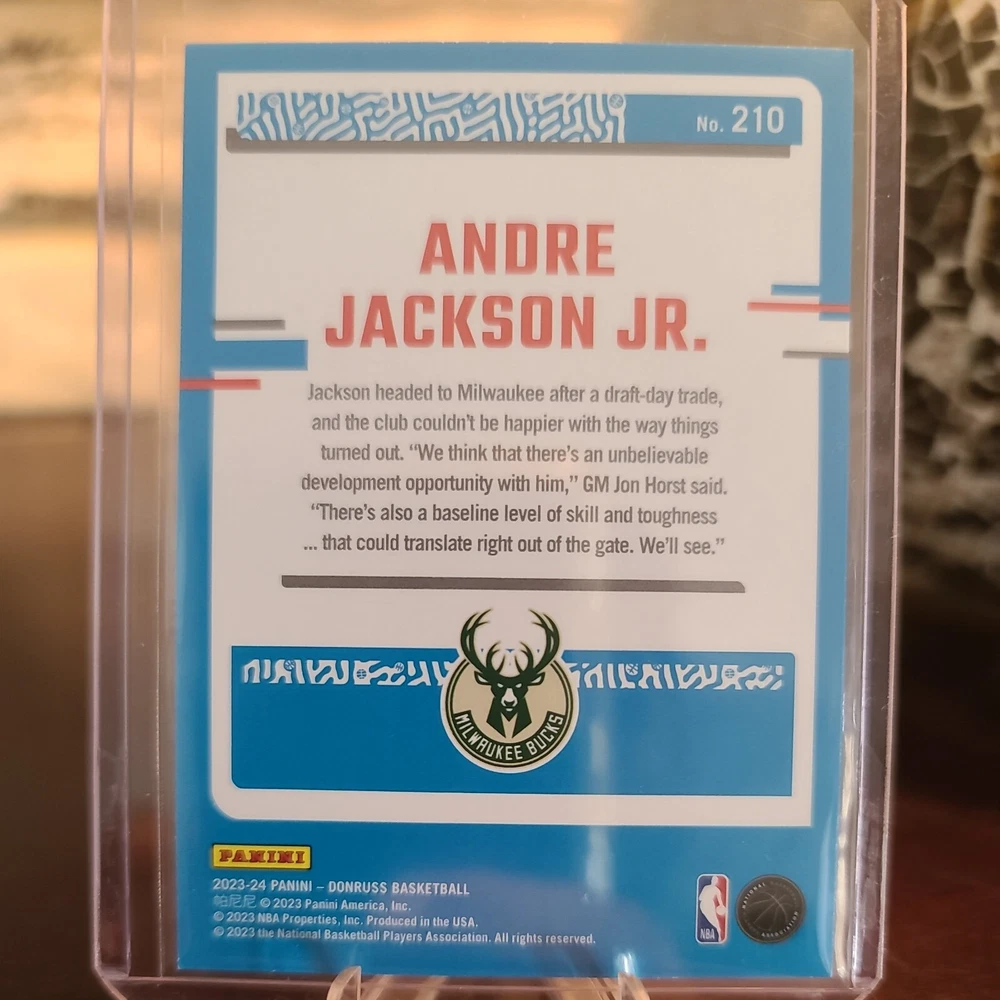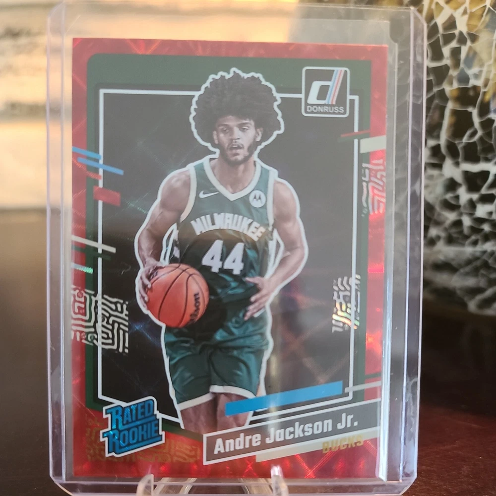 Own a piece of basketball history with this limited edition, serial numbered Andre Jackson Jr. trading card from the 2023-24 Donruss Basketball set. The card features a stunning Red Laser Holo design, making it a must-have for any collector or fan of the Milwaukee Bucks. This UnGraded card is rated Near Mint or Better and comes from the trusted manufacturer Panini. With its Base Set, Short Print, and Rookie features, this card is a true gem for any sports trading card enthusiast. Don't miss out on the chance to add this card to your collection and showcase your love for the sport.