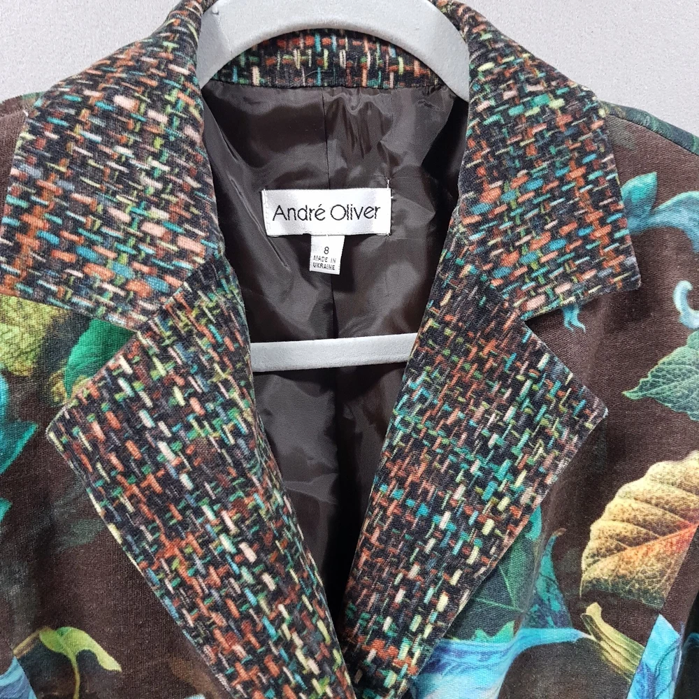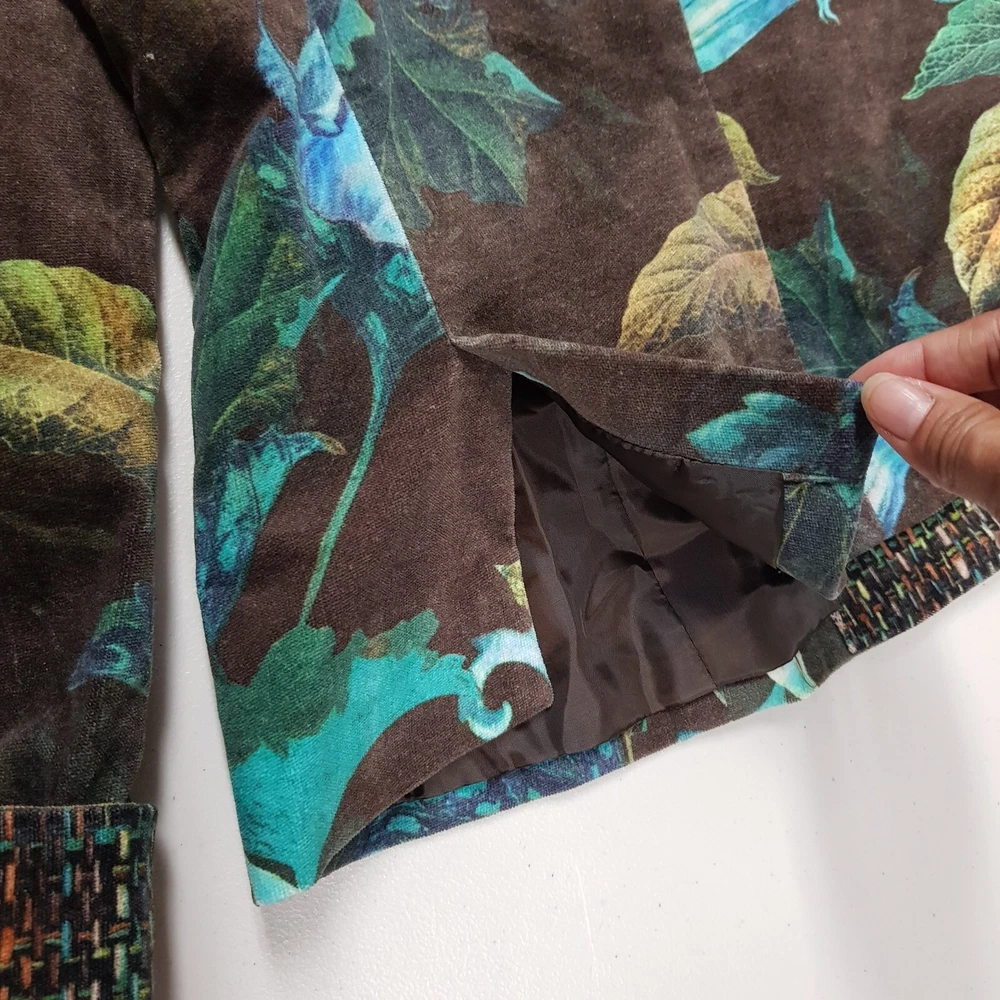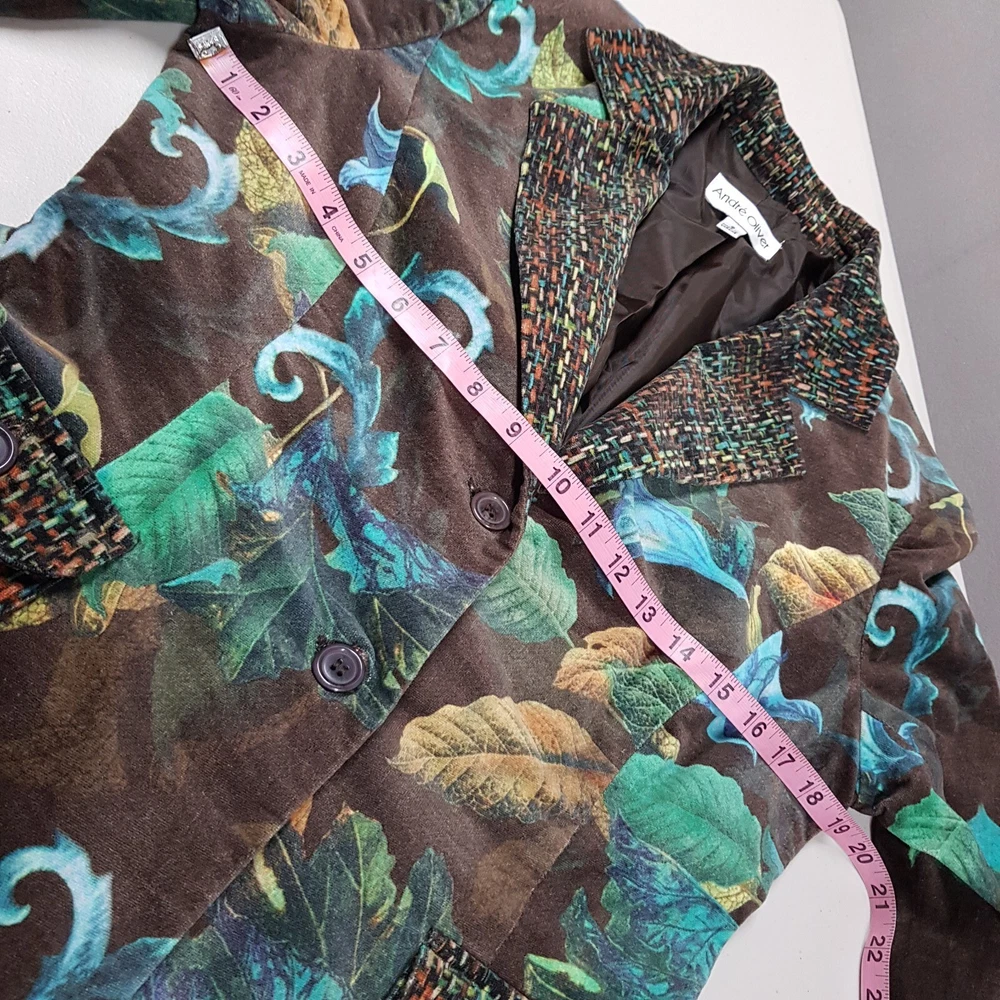 Andre Oliver Blazer Jacket sz 8 Velveteen Quirky Art to Wear VTG Mixed Print