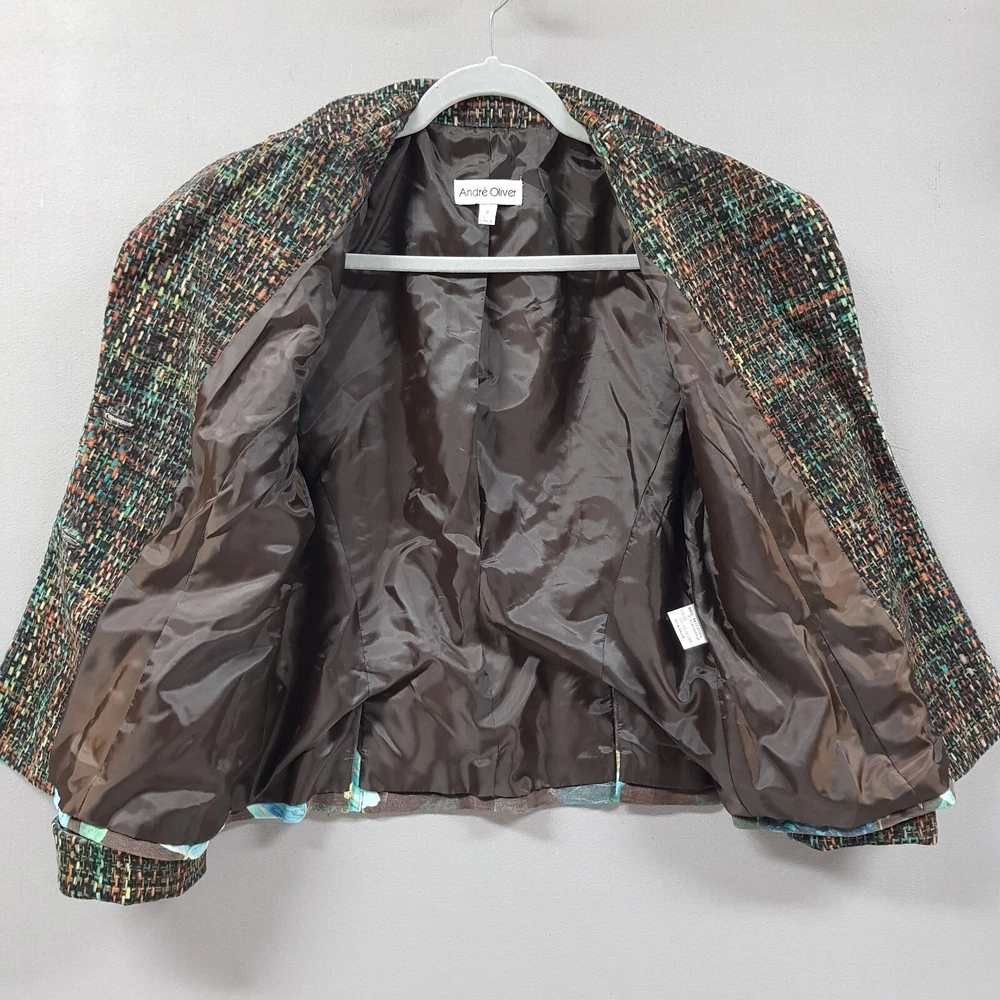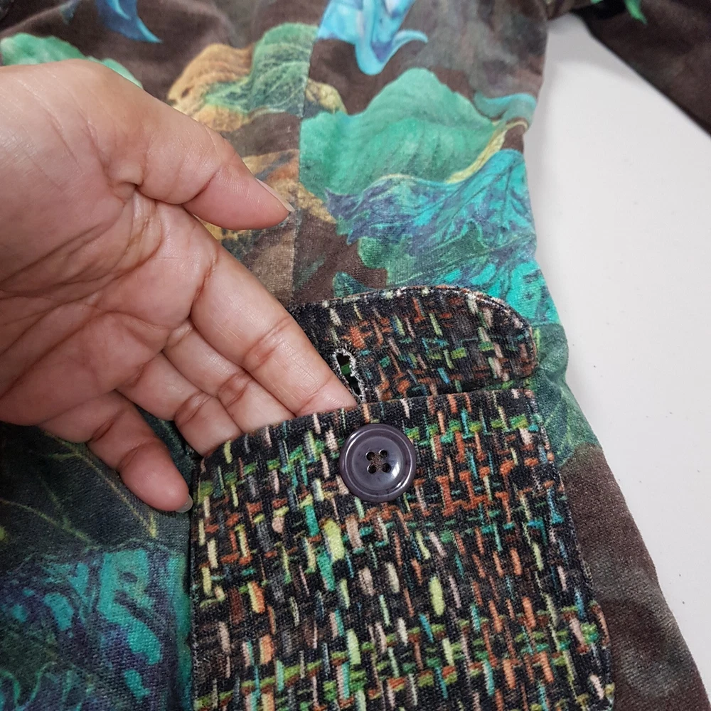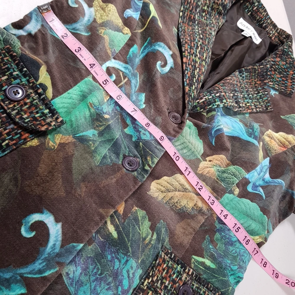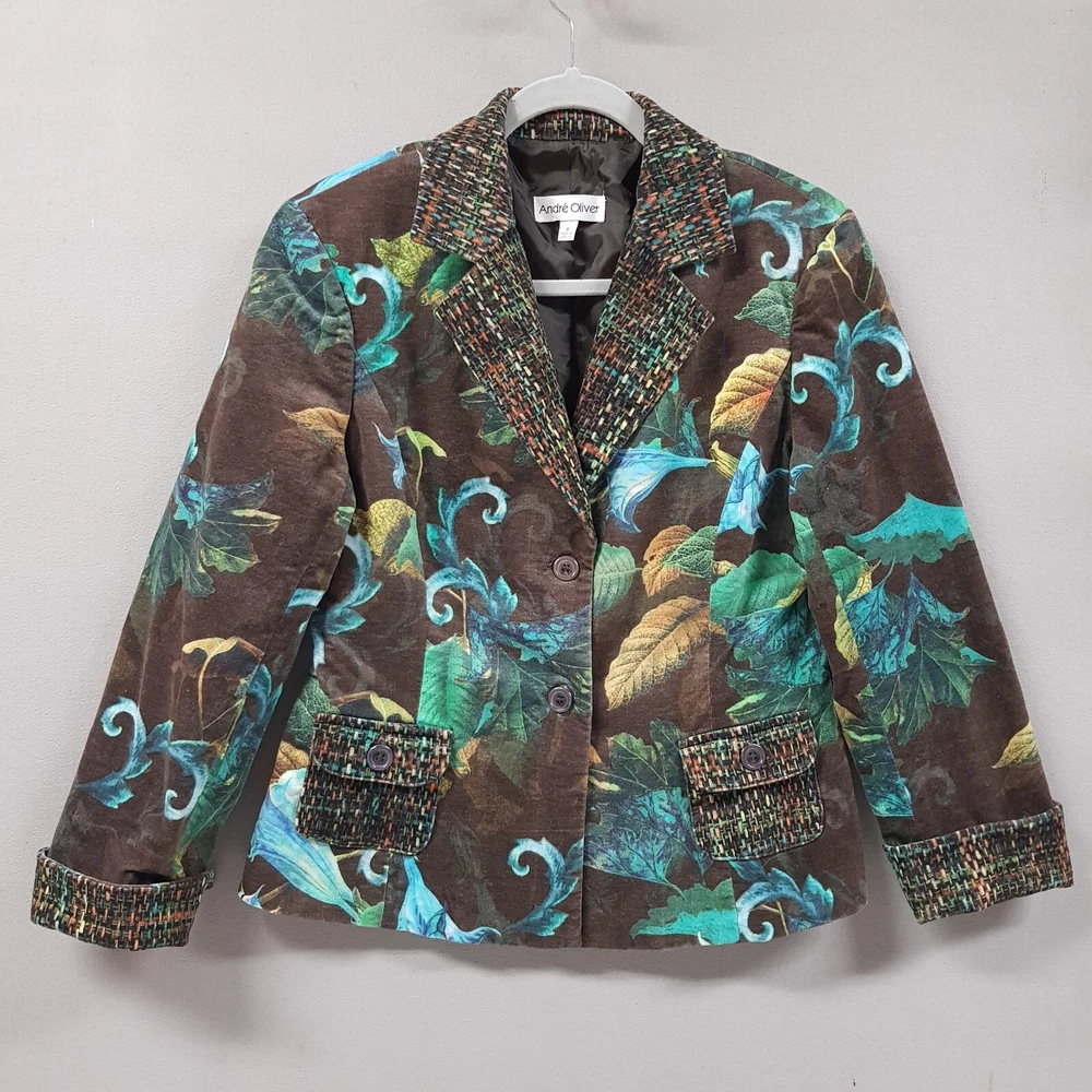 Andre Oliver Blazer Jacket sz 8 Velveteen Quirky Art to Wear VTG Mixed Print