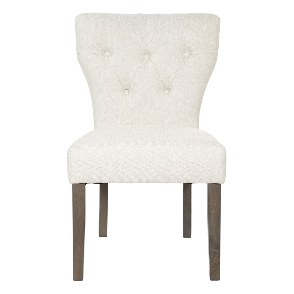 The traditionally classic Andrew Dining Chair provides premium comfort and lasting beauty to every home. Our accent chair with solid wood legs and button tufted back, will be at home around the dining room table, as well as any writing desk. Available in several chic fabric choices that will pair seamlessly with traditional, contemporary, cottage or rustic farm-style decor. High performance easy care fabric, and woodblock construction ensures long-lasting durability. Relax with the joy of simple assembly. Traditional Style Premium comfort dining chair Classic design pairs with a variety of dining table options Sits pretty at a desk Attractive thick padded, button tufted back Generous padded seat supported by sinuous spring construction Covered in high performance, easy care fabric Free Shipping Over $49.99* Details Andrew Dining Chair with Grey Brushed Legs Product Description: The traditionally classic Andrew Dining Chair provides premium comfort and lasting beauty to every home. Our accent chair with solid wood legs and button tufted back, will be at home around the dining room table, as well as any writing desk. Available in several chic fabric choices that will pair seamlessly with traditional, contemporary, cottage or rustic farm-style decor. High performance easy care fabric, and woodblock construction ensures long-lasting durability. Relax with the joy of simple assembly. Traditional Style Premium comfort dining chair Classic design pairs with a variety of dining table options Sits pretty at a desk Attractive thick padded, button tufted back Generous padded seat supported by sinuous spring construction Covered in high performance, easy care fabric Attractive dining chair with solid wood legs FOR INDOOR RESIDENTIAL USE ONLY