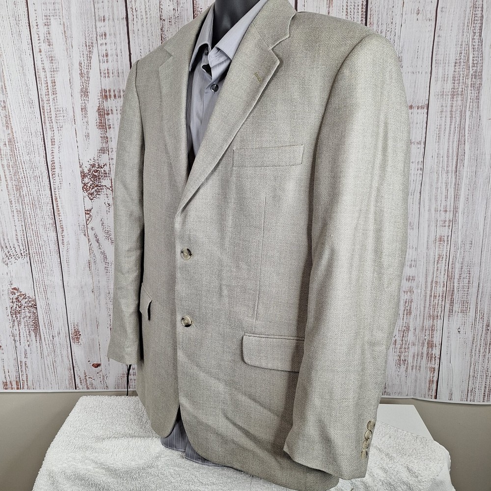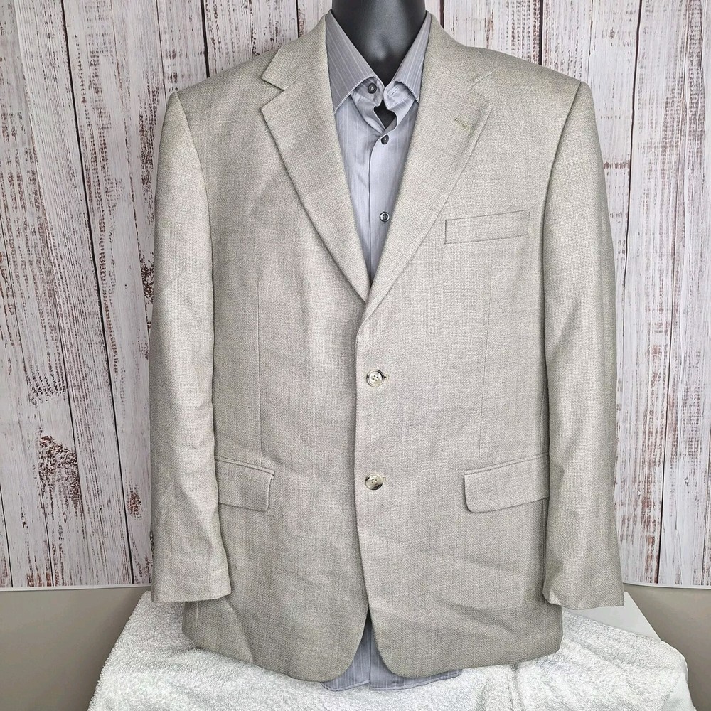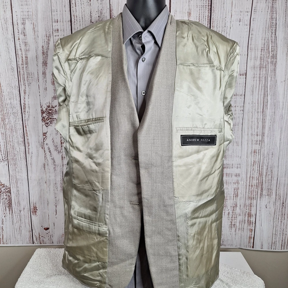 Andrew Fezza Jacket Blazer Mens 42R Beige Ventless Quality used condition. Please check out the measurements before buying to ensure a perfect fit. Shirt Size on Label 42R Shoulder- Hem 31.00'' Shoulder- Shoulder 19.00'' Shoulder- Wrist 25.00'' Armpit- Armpit 23.00'' Top button 22.00'' Everything ships within a day. Feel free to message me with any questions. Thank you very much. 4/11/24