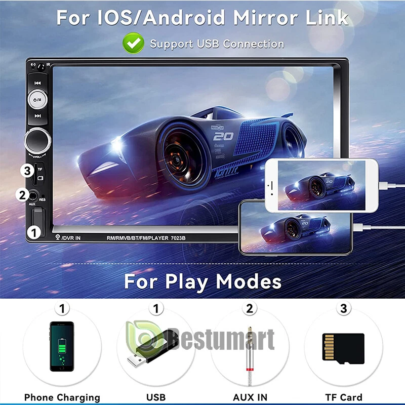 7 Inch Double 2 Din Car Stereo Radio Android 10 GPS Wifi Touch Screen MP5 Player BUY WITH CONFIDENCE ↓ ↓ ↓ √ 100% New & Excellent Quality √ Strictly QC, Each set was fully tested before shipping √ Free 1-3 Days Shipping From NJ,USA.Ship within 24 hours. √ Offer delivery with Tracking Number √ Free Return, Seller Pay!! √ Lifetime Warranty Feature: ✔ This machine comes with a smart 7-inch high-definition digital touch screen, dynamic menu interface, suitable for most cars, supports smartphone Android/IOS screen projection to car player and there are seven light colors that can be adjusted. ✔ Full-featured wireless in-car remote control, built-in bluetooth function, can be connected to mobile phones, hands free calls, HD video, U disk, TF card playback function, USB 2.0 interface compatible with various U disks, mobile hard drives,etc. ✔ MP5 radio can listen to real-time road conditions, news broadcasts, weather forecasts, etc., supports reversing image, steering wheel control functions, and has four playback modes at the same time, you can use U disk, AUX, bluetooth playback. ✔ New processing chipset, faster response, more stable performance, more powerful functions, hardware electronic sound(EQ) processing, multiple sound modes, high and low bass can be adjusted, high-performance digital turning FM radio automatic scanning, 18 station storage. ✔ Support random playback, folder playback, AUX audio input interface can be connected to MP3, GPS, moible phone, walkman and other audio input, and USB supports high current output, which can charge moible phones. Specification: Product model:7018B Color:Black Material:Plastic System:Wince Screen size:7 inches Moible phone interconnection:support Android/IOS AUX input:support Image format:JPG Screen resolution:800*480 Radio frequency:87.5M-108M Radio band:FM1、FM2、FM3 Decoding chip:C500 Reversing image:support(optional camera is required) Steering wheel control:support GPS navigation:Not support Power supply:DC 12V±10% Effective pixel:656*492 Current consumpition:No more 150mA Horizontal sync frequency:15625KHZ Water-proof:IP67/IP68 Vertical sync frequency:PAL 50HZ/NTSC 60HZ Operating temperature:-30℃∽80℃ RH95% MAX Horizontal Angle:110°/160° Lens angle:120°/170 Audio format:MP3/WMA/WAV/OGG/FLAC/APE Video format:RM/RMV/MP4/FLV/MKV/3GP/AVI/ASF/SWFMP1/MP2 Product size:17.8*10.1*6.3cm/7.01*3.98*2.48inch Package include: 1×Car MP5 Player 1×Remote Controller 1×Power Cable 1×Backup Camera 2×Audio Cable 2×Screws 1×User Manual Payment Shipping Return Policy About Us Contact Us Payment *** We accept Paypal,Visa,Credit Card, e-Check . etc. Shipping Below is the approximate delivery time to different countries (Just estimated) *** 1-3 business days to buyer in USA via Expedited shipping *** 1-5 business days to buyer in USA via USPS Standard Shipping *** 5-12 business days to buyer in CANADA *** 8-15 business days to buyer in EUROPE Country (Depends on Custom) Return Policy *** Free Return, we accept 60 days Money Back or Exchange Guarantee for All Items. About Us Customer Comes First !! Contact Us For any questions or problems, please contact us in the first monent, we will always be here to help you solve the problem.(From Monday to Saturday, not for Holidays). On Oct 25, 2024 at 00:22:25 PDT, seller added the following information: