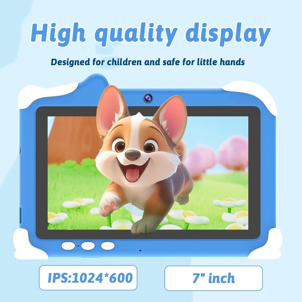 Android 12 Kids Tablet, 7 inch Tablet for Kids, 4GB RAM 32GB ROM Blue Product Details 【New Android 12 Kids Tablet】 IWEGGO kids tablet equipped with the latest Android 12 operating system and powerful quad-core processor, ensures fast running when opening applications and multitasking, pre-installed kids apps, specially designed for different age kids, different color for choice. 【4GB +32GB Performance Kids Tablet】 The toddler tablet adopt 4GB RAM (2GB fixed memory, 2GB virtual memory) and 32GB ROM and supports Micro SD card expand up to 512GB, so that you can storage more photos and videos. Tablet passed the GMS certification, you can download much kids apps, support widevine L1, Netflix. 【Parental Control Tablet for Kids】 This kids tablet support parental control function, parents can limit screen time, set password, set separate profiles for each kid, add or block apps, filter unsafe web pages. Ensure your kid online safety through the parental control mode. 【Eye Protection Screen】 7 inch tablet for kids with quality 1024x600 IPS HD display screen. clear and bright screen provides outstanding visual experience when kids reading and watching the videos. automatic brightness adjustment can better protect your eyes, reduce eye fatigue. 【Ideal Gift Choice】 This kids tablet with slim and compact body, with soft and lightweight protective case, more durable, it can protect your tablet when drops. And the adjustable plastic stand can stand tablet stable. This tablet PC can bring a lot of fun and knowledge for your kids learning while playing. The toddler tablet is an ideal gift for birthday, Christmas, holiday season etc.