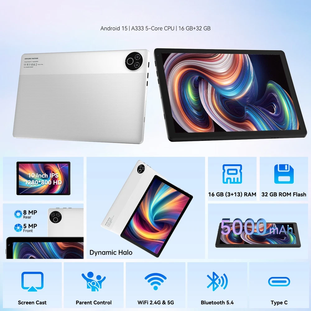 Android tablet is a good choice for birthday or a gift for family and friends. Our Tablet PC professional team focuses on customer service, adhering to the principle of customer first, with professional experience and high quality service, if you receive any problematic products, please feel free to let us know. We will provide you with a satisfactory and professional solution within 24 hours. We offer a 30-day money-back guarantee and 12 months warranty for quality issue. Android 15 More Personalization:The tablet is powered by the latest Android 15 operating system, which improves the tablet's performance and efficiency giving users more control over their data and personal information, and introduces tighter privacy controls and security features to enhance its user protection and user assistance features. Updates include new themes and AI-generated wallpapers, more control over health-related features and safety settings, and improved functionality for a range of accessibility features. This makes the tablet easier and more efficient to use and a great addition to your life! Updated Octa-core Processor:Android 15 tablet comes with an octa-core processor, the new A523 processor featuring the A55 architecture core. It offers more than a six-fold increase in performance compared to quad cores. Capable of supporting a maximum frequency of 2.4 Ghz, this tablet utilizes a low-power 22nm process for lighter operation and faster processing with lower heat and power consumption. It supports more apps, improves graphics performance and processing speed, and delivers a smooth video experience. 16GB+32GB/1TB Expansion+Widevine L1 :Tablet is expandable storage of microSD card/TF card up to 1TB, under 16GB RAM (3+13 expansion)+32GB internal storage, without worrying about the storage capacity of the tablet itself. One tablet can handle many entertainment needs such as video, music, e-books, online courses, internet, games, etc. Support Widewine L1, it will be able to transmit high-definition videos of high-quality video streaming platforms such as netflix,video. 10 inch High-Definition Touch Screen:10.1 inch tablet computer has an 1332*800 IPS HD touchscreen display excellent visual experience from all angles, presenting you with richer picture display, clearer portrait capture, more delicate detail depiction, large screen soft light curtain can reduce the visual pressure on your eyes and relieve fatigue. 5MP + 8MP dual cameras are designed to meet your daily needs for great photos and clear video chats. Take photos easily anytime and anywhere. Long Lasting Battery & Bluetooth5.3:10 inch tablet is powered by a long-lasting, reusable 5000mAh Li-ion battery that easily gives you up to 8 hours of reading, browsing, watching movies, and playing games, giving you more time for entertainment and surfing the web. The tablet has built-in Bluetooth 5.3 and supports 5G/2.4G dual-band WIFI connection. Suitable for coffee shops, offices, bedrooms and more. The strong reception signal can keep you well connected at all times, so you can enjoy working, talking to family, and connecting with friends anytime and anywhere. Ideal Choice For Gift :Android tablet is a good choice for birthday or a gift for family and friends. Our Tablet PC professional team focuses on customer service, adhering to the principle of customer first, with professional experience and high quality service, if you receive any problematic products, please feel free to let us know. We will provide you with a satisfactory and professional solution within 24 hours. We offer a 30-day money-back guarantee and 12 months warranty for quality issue.