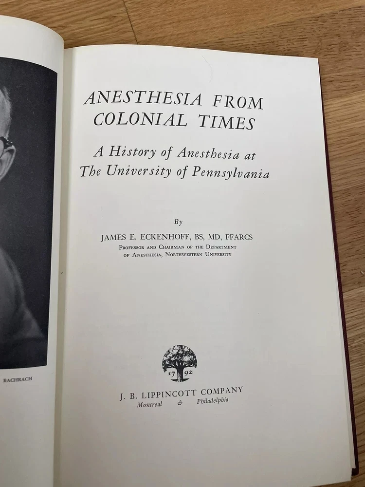 Anesthesia from Colonial Times by James E. Eckenhoff 1966 Hardcover Book VTG