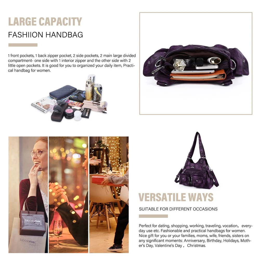 Angel Kiss Handbags for Women Large Hobo Bag Soft PU Leather Shoulder Bag for Women Quality Material: Ultra-soft washed PU leather Hobo handbag with fabric lining and high quality zipper. Waterproof, also easy to clean. Not easy to be out of shape, very easy to wipe clean.Easily wipe the bag with a damp cloth to keep it looking new. Shoulder Bag Size: 13.2’’ 4.5’’ 10.7’’(L W H).Height of Handle:11.3’’ , Casual style good for everyday use, It can hold some basic necessities such as cell phone, A4 magazine,book, umbrella,wallet, water bottle. Multiple Pockets: The tote Bags multiple pockets design make it convenient to pick up stuff. It is good for you to organized your daily item, practical handbag for women.Such as A4 magazine, umbrella, wallet, water bottle, iPhone, cosmetics and more. Functional Shoulder Handbag: Attached an adjustable and removable shoulder strap, it can be used as handbag, single shoulder or crossbody bag. You can decide how your bag fits you.Perfect for those sunny days when carrying a handbag is not an option. Perfect Gift: This hobo PU leather shoulder handbag is the perfect combination of fashionable and durability. Perfect for Christmas Day, Valentine’s Day, Mother’s Day, Thanksgiving Day, Birthday etc. As a thoughtfully gift idea for your mom, wife, lover, friends. Shipping We offer FREE shipping on all orders! We ship within Three business days of payment, usually sooner. We use a selection of shipping services such as UPS, FedEx, USPS etc. We only ship to the lower 48 states, no APO/FPO addresses or PO Boxes allowed. Local pickups and combined shipping options are not provided at this time. Return You can return a product for up to 30 days from the date you purchased it. Any product you return must be in the same condition you received it and in the original packaging. Please keep the receipt. Payment We accept payment by any of the following methods: PayPal Please pay as soon as possible after winning an auction, as that will allow us to post your item to you sooner! Feedback Customer satisfaction is very important to us. If you have any problem with your order, please contact us and we will do our best to make you satisfied. Contact Us If you have any queries, please contact us via ebay. We usually respond within 24 hours on weekdays. Please visit our eBay store to check out other items for sale! Thank you for shopping at our store.