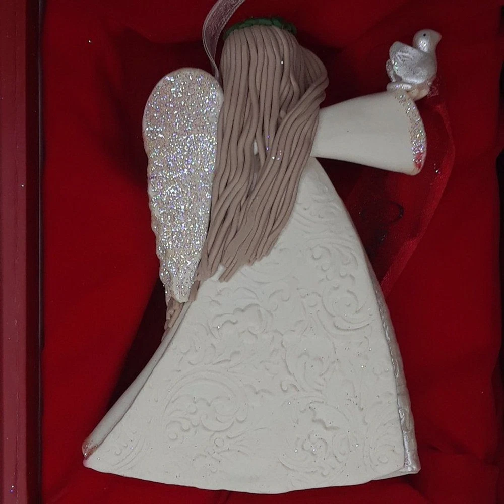 Type: Angel Size: Small Occasion: Christmas Year Manufactured: 2005 Set Includes: Ornament and Box Character: Angel Material: Resin Theme: Angels Shape: Angel Color: White Brand: Pavilion Gift Co