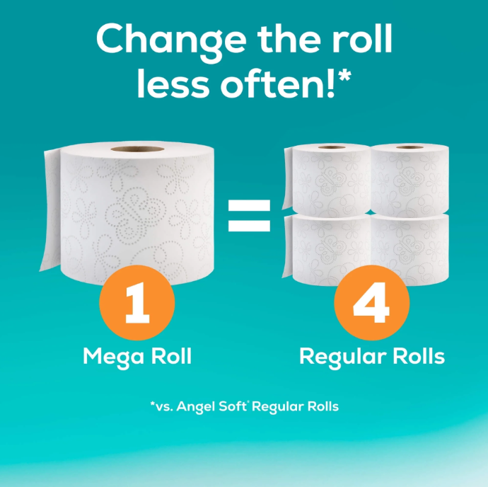 Angel Soft Toilet Paper 2-Ply 36 Mega Rolls Septic Safe Bath Tissue Bulk Pack About this item Each roll of Angel Soft Toilet Paper has the perfect blend of comfort and durability Every Mega Roll is 4X larger than our regular rolls so you can change the roll less often Mega Rolls deliver the long-lasting toilet paper rolls you need at a price you’ll love Angel Soft Toilet Tissue is septic safe in well-maintained sewer and septic systems and made from SFI sustainably sourced trees Each Mega Roll Toilet Paper pack contains 36 Mega Rolls with 320 2-ply toilet paper sheets per roll Product details Angel Soft Mega Rolls are designed to last you longer, with rolls that are 4 times as big as our regular rolls. Plus, with 320 2-ply sheets on every Mega Roll, you’ll always have plenty of the softness and strength you love on hand. And like all your favorite Angel Soft products, our Mega Toilet Paper Rolls are flushable and septic safe in well-maintained sewer and septic systems. Each pack includes 36 Mega Rolls with 320 2-ply sheets per roll. Angel Soft Toilet Paper. Soft and Strong. Simple.