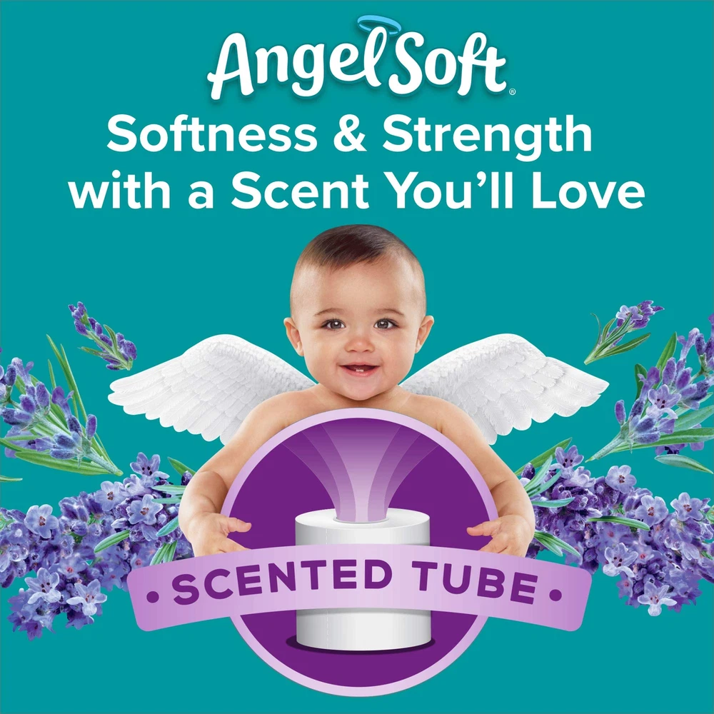 Angel Soft Toilet Paper with Fresh Lavender Scent delivers the same softness and strength your family relies on, with a little something extra for scent lovers. The tube contains lavender scent, for a hint of fragrance with every use. Each Double Roll contains 242 2-ply sheets, fits standard bathroom toilet paper holders and is flushable and septic safe in standard sewer and septic systems. The softness and strength you already love, with the added value of scent on the tube Freshen things up with a hint of lavender every time you reach for Angel Soft with Fresh Lavender Scent Each Double Roll is equal to 2 Angel Soft Regular Rolls—and they still fit standard holders Soft, strong, septic safe in standard, well maintained sewer and septic systems, and made from sustainably sourced trees Each pack contains 12 Double Rolls with 242 2-ply sheets per roll