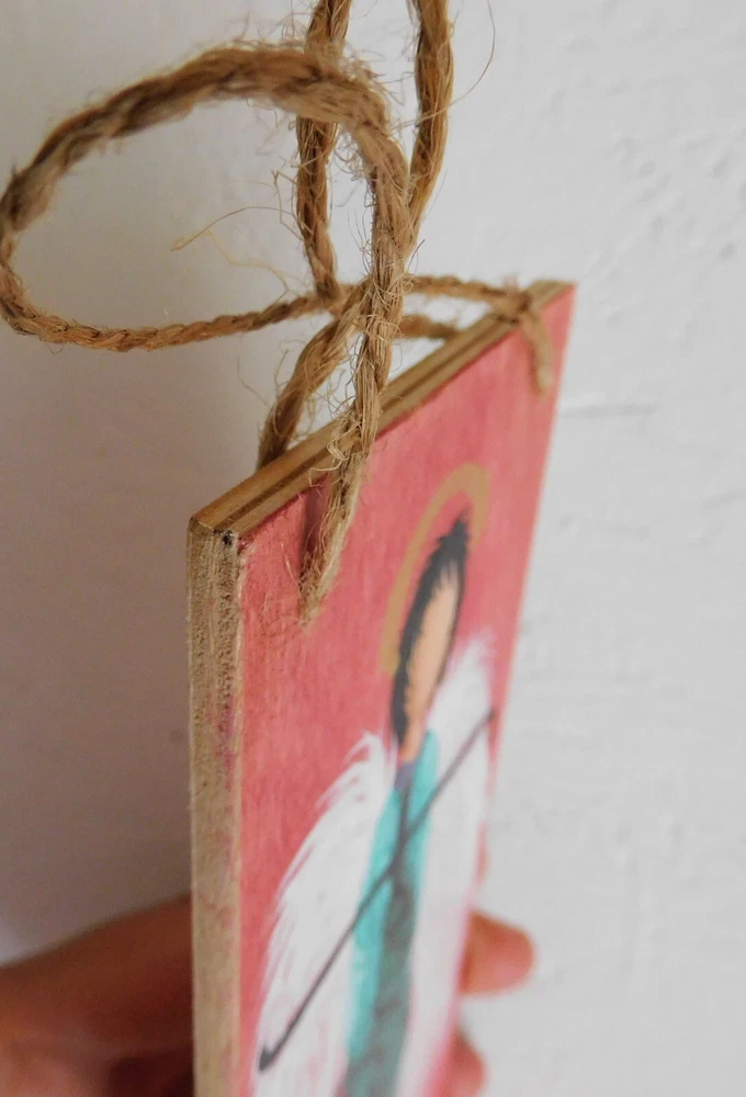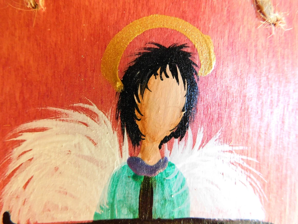 This is a hand painted wooden sign by Rain Crow, featuring a guardian angel and the word "forgiven". Reversed there is a Bible quote "As for me and my house we will serve the Lord" It has a jute hanger. Can use as ornament, an edition to a wreath, or hang as is. Varnished for protection. 7" x 3" x 1/8" Wood Signed on back Varnished. Please ask questions before purchase. Note: The photos are zoomed in to provide details. They may appear extremely large in the photos. Please see actual size above. COMBINED SHIPPING is available automatically at checkout. I cannot hold items after you pay. If you wish to combine, ALL items must be paid for at the same time. ART-ANWOOD