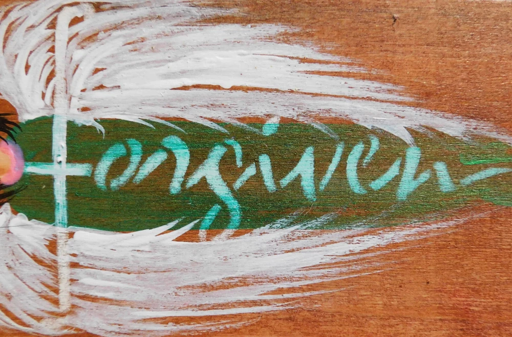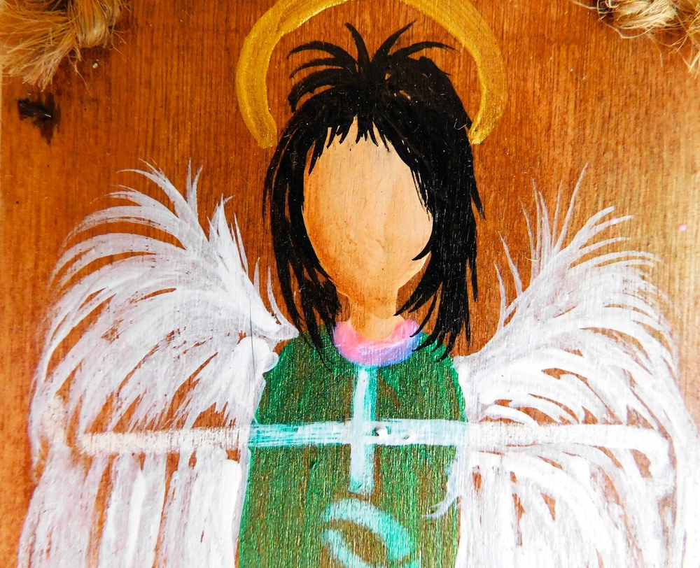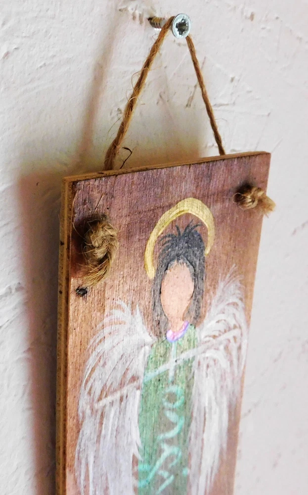 This is a hand painted wooden sign by Rain Crow, featuring a guardian angel and the word "forgiven". It has a jute hanger. Can use as ornament, an edition to a wreath, or hang as is. Varnished for protection. 7" x 3" x 1/8" Wood Signed on back Varnished. Please ask questions before purchase. Note: The photos are zoomed in to provide details. They may appear extremely large in the photos. Please see actual size above. COMBINED SHIPPING is available automatically at checkout. I cannot hold items after you pay. If you wish to combine, ALL items must be paid for at the same time. ART-ANWOOD