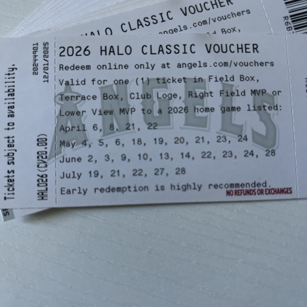 CHECK SECOND PICTURE FOR DATES AND SEATING AREAS!! 16 ticket vouchers in total for Angel Stadium. If you have any more questions you can message me. Go Halos!