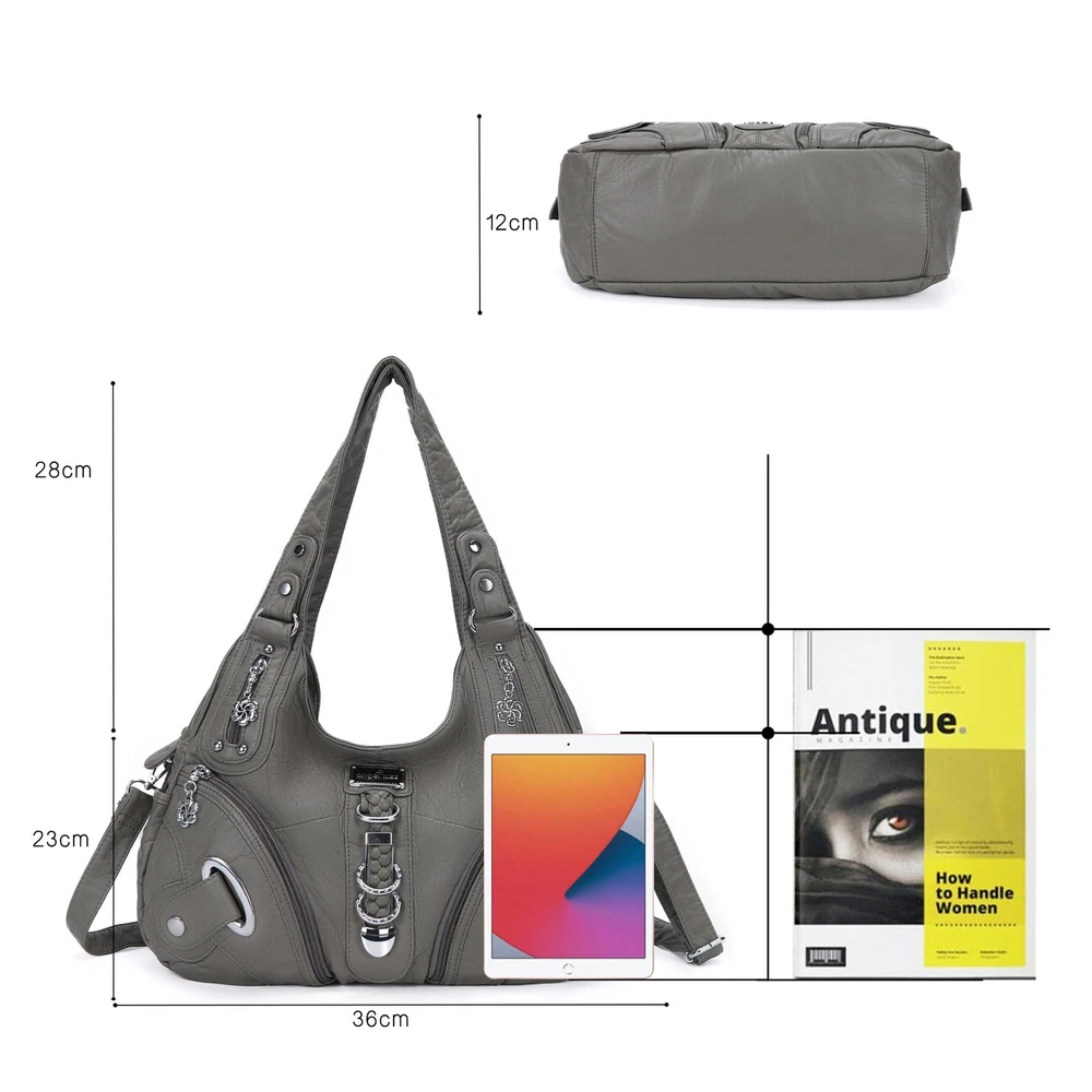 Angelkiss Hobo Purses and handbags for Women Satchel Handbag Women Purses Large Daily Shoulder Bags ♔[Matreial for Purses]—High quality washed PU leather,comfortable, light weight, washable, ironable, Stylish and elegant ,vintage design Hobo Bag with beautiful decorative silver color hardware multi vegan colors or tie-dye colors to choose. ♔[Suitable Size]—14*5*13 inch(body), double shoulder straps comfortable for your shoulder.It’s a convertible hobo bag with a snap hook strap that can change multi backpack ways. ♔[Functional Structure]—The outer multi pockets design is convenient for storing your cosmetics, keys, and other small items. Multi roomy main body design can put IPAD, notebooks and other daily items. ♔[Multi-Benefits]—An ultra practical fashion bag,one bag can suitable for various occasions, large capacity can be placed daily cosmetics, mobile phones, wallets and other daily items,also suitable for your tablet and Ipad,Easy to carry, perfect gift for your friends,sister,mother and lover. ♔[After Service]—Excellent design, exquisite handmade and high practicality are the common features of Angelkiss brand bags. We offer 100% After-sale Guarantee to our products. To select more crossbody bags, tote handbags and wallets, you can search Angelkiss. Shipping We offer FREE shipping on all orders! We ship within Three business days of payment, usually sooner. We use a selection of shipping services such as UPS, FedEx, USPS etc. We only ship to the lower 48 states, no APO/FPO addresses or PO Boxes allowed. Local pickups and combined shipping options are not provided at this time. Return You can return a product for up to 30 days from the date you purchased it. Any product you return must be in the same condition you received it and in the original packaging. Please keep the receipt. Payment We accept payment by any of the following methods: PayPal Please pay as soon as possible after winning an auction, as that will allow us to post your item to you sooner! Feedback Customer satisfaction is very important to us. If you have any problem with your order, please contact us and we will do our best to make you satisfied. Contact Us If you have any queries, please contact us via ebay. We usually respond within 24 hours on weekdays. Please visit our eBay store to check out other items for sale! Thank you for shopping at our store.