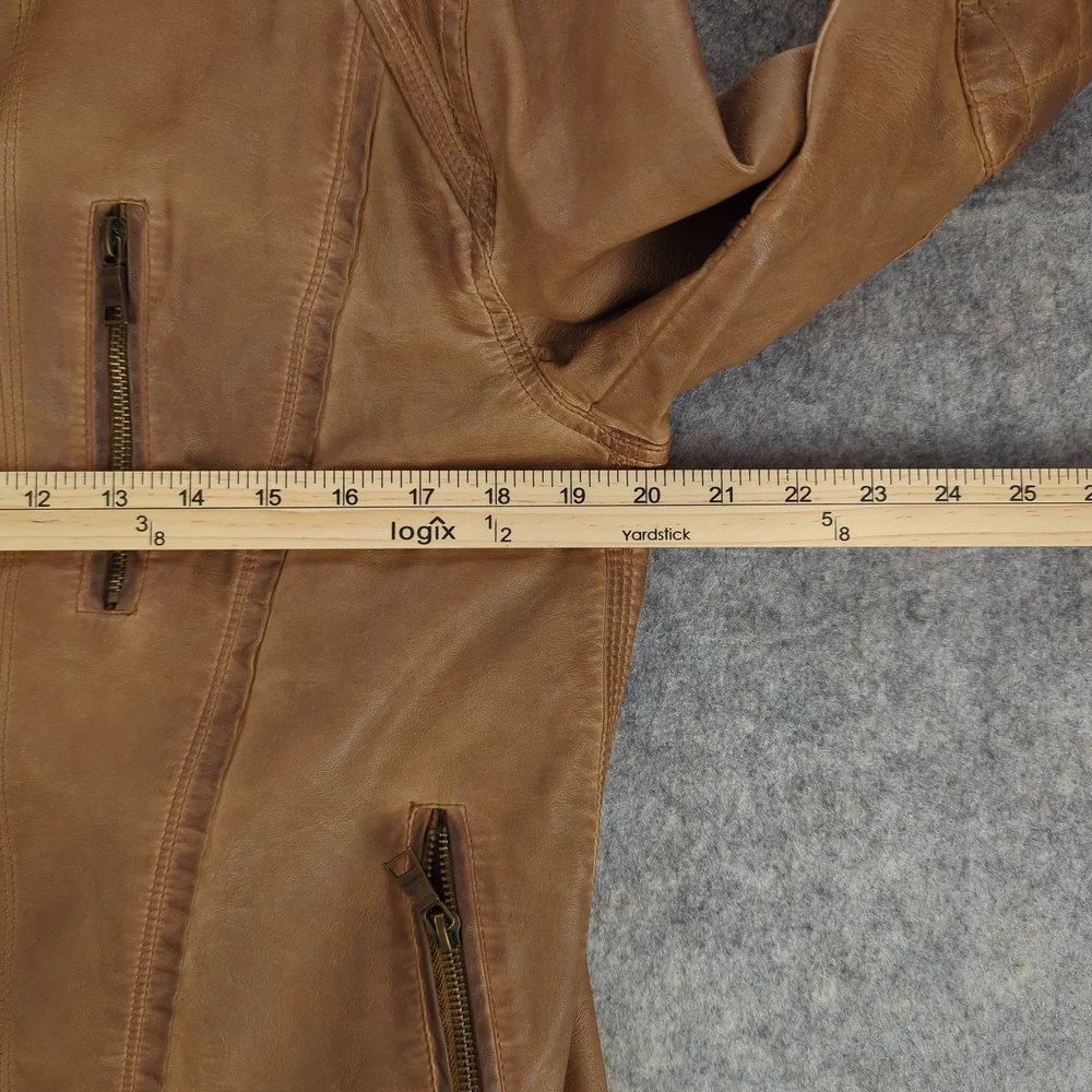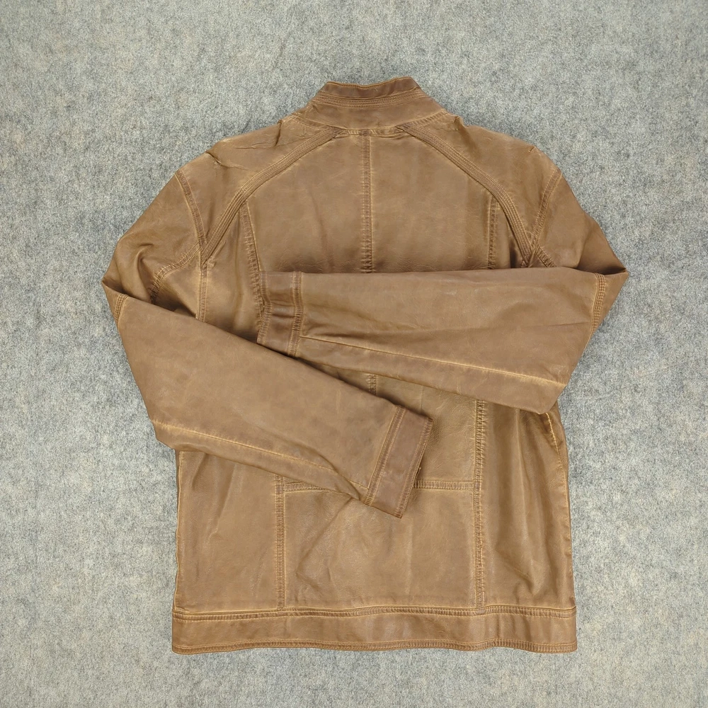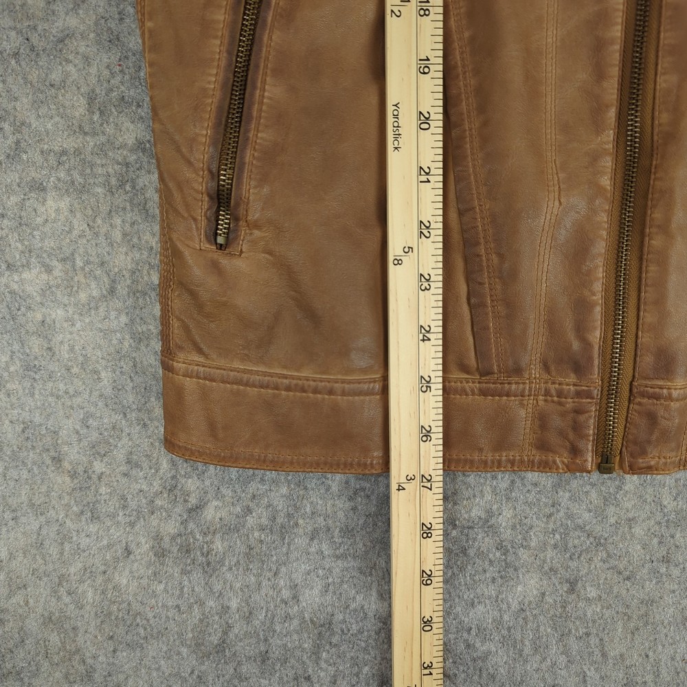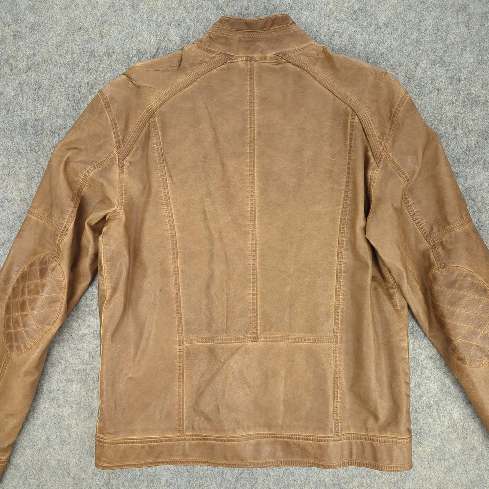 Angelo Litrico Jacket Mens Medium Brown Leather Urban District Biker Retro Style Condition: Good used condition with light overall wear, some light marks on sleeves, and minor signs of use throughout—no major flaws. Please see photos for details. Shell: Genuine leather exterior with a soft brown finish, showing natural patina and vintage-inspired wear Lining: Smooth brown polyester interior with inside chest and side pockets Features quilted oval elbow patches for extra durability and style Epaulet details at shoulders, three front zippered pockets, front zip closure, and side waist adjusters Brand: Angelo Litrico, "Urban District Special Selection Superior Quality" collection (see label for details) Approximate tag size: Medium (Mens) Measurements (for reference only, see photos for exact visualization): - Chest (pit to pit): About 21 inches - Back length (collar seam to hem): About 27.5 inches - Sleeve length (shoulder to cuff): About 25 inches Classic retro moto/biker style perfect for casual or urban wear Color: Brown leather with matching brown lining