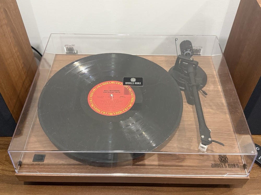 ANGELS HORN H002-OR RECORD PLAYER VINTAGE VINYL TURNTABLE (WALNUT) & ANGELS HORN H00501 HI-FI BLUETOOTH TURNTABLE WITH STEREO BOOKSHELF SPEAKERS BRAND NEW NEVER USED