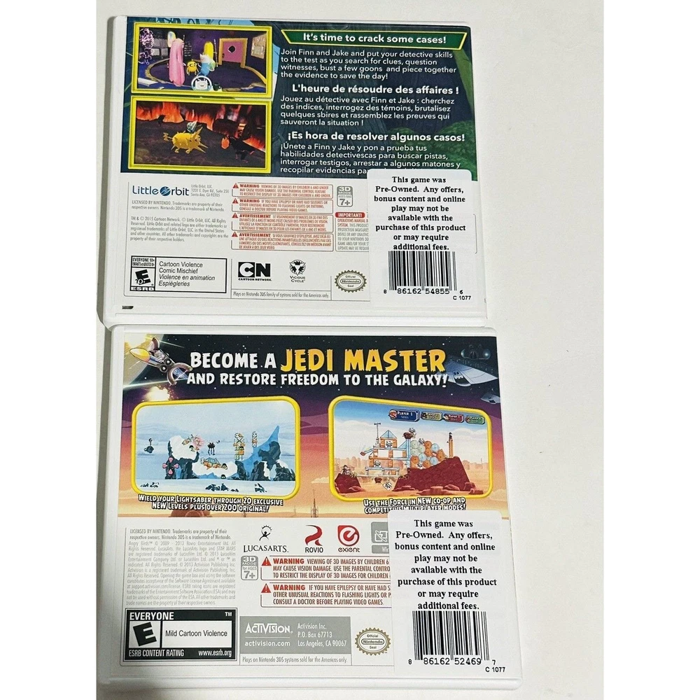 Get ready for hours of fun with this amazing Nintendo 3DS bundle! Featuring Angry Birds: Star Wars and Adventure Time, this bundle is perfect for gamers of all ages. With a rating of E-Everyone, this game is suitable for everyone!