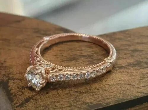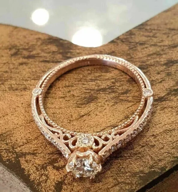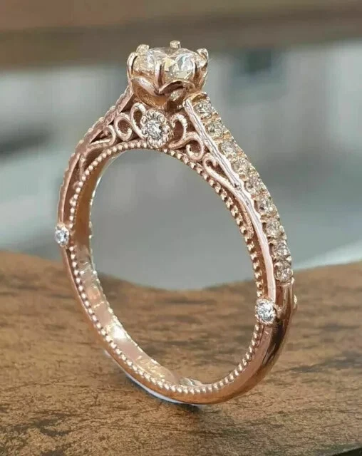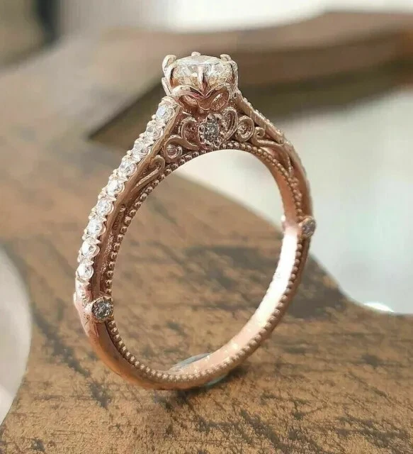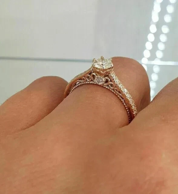 Anillo de compromiso de lujo de diamantes simulados de corte ovalado de 2 quilates enchapado en oro rosa de 14 quilates