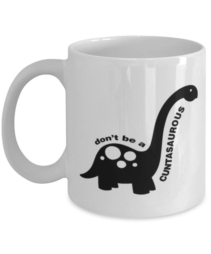 Animal Lover Funny Coffee Mug Don’t Be A Cntasaurous - White Coffee Mug Product Details.. This high quality 11oz. ceramic white mug has a premium hard coat that provides crisp and vibrant color reproduction sure to last for years. Perfect for all hot & cold beverages. The highest quality printing possible is used. It will never fade no matter how many times you wash it. Material: 100% Ceramic. Print both sides. Dishwasher and Microwave Safe. High Gloss + Premium White Finish. Printed in the U.S.A. Personalized & Custom. We support personalized and custom mug to add custom, when placing an order, you can add notes to the "order note" in shipping address section. Also you can contact us directly via message. Shipping Info. Ready to ship in 1 to 2 business days, All products are made-to-order and proudly printed in the United States. Shipped by USPS and DHL, You will receive your order in 5-7 days. Replace & Refund. All products are defective during shipping broken, chipped will be replaced free of charge. You are not satisfied with the product, we will refund 100% money to you. If any other issues arise, please do not hesitate to message, we would be more than happy to assist you.