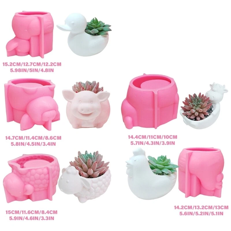 Features: Animal shaped resin silicone molds feature cow, duck chick, and sheep appearance, suitable for crafting holder, tealight holder, cup, succulents planter, flowerpots, pen holder, home decorations, epoxy resin project. Crafted from silicone, soft and flexible, good durability, easy to use. Dishwashers, oven, and fridges safe, not easy deformed. Works great as holder resin molds, concrete cement molds, clay molds, epoxy resin molds. Use our animal shaped silicone molds to make candlestick, tealight holder, succulents planter, decoration, art craft. Could be used with concrete, cement, gypsum, clay, epoxy resin. For crafting holder, flowerpots, you can add various embellishments, such as dry flower, sequins, rope, ribbon, bowknots, resin color and other decorations you like. Great for crafting container, tealight holder, gypsum decorations, home decorations, Christmas present, wedding present, birthday present, Valentines present, office table decorations. Specifications: Component: Silicone Cow Shaped Mould Size: Approximately. 14.7x11.4x8.6cm/5.8x4.5x3.4in Duck Shaped Mould Size: Approximately. 15.2x12.7x12.2cm/5.98x5x4.8in Chick Shaped Mould Size: Approximately. 14.4x11x10cm/5.7x4.3x3.9in Animal Shaped Mould Size: Approximately. 14.2x13.2x13cm/5.6x5.2x5.1in Sheep Shaped Mould Size: Approximately. 15x11.6x8.4cm/5.9x4.6x3.3in Weight: Approximately. 450-790g Package Includes: 1Piece Animal Shaped Silicone Mould note: 1.Please allow 0-1cm error due to manual measurement. Make sure you donot mind before bid. 2.Due to difference between different monitors, the picture may not reflect the actual color