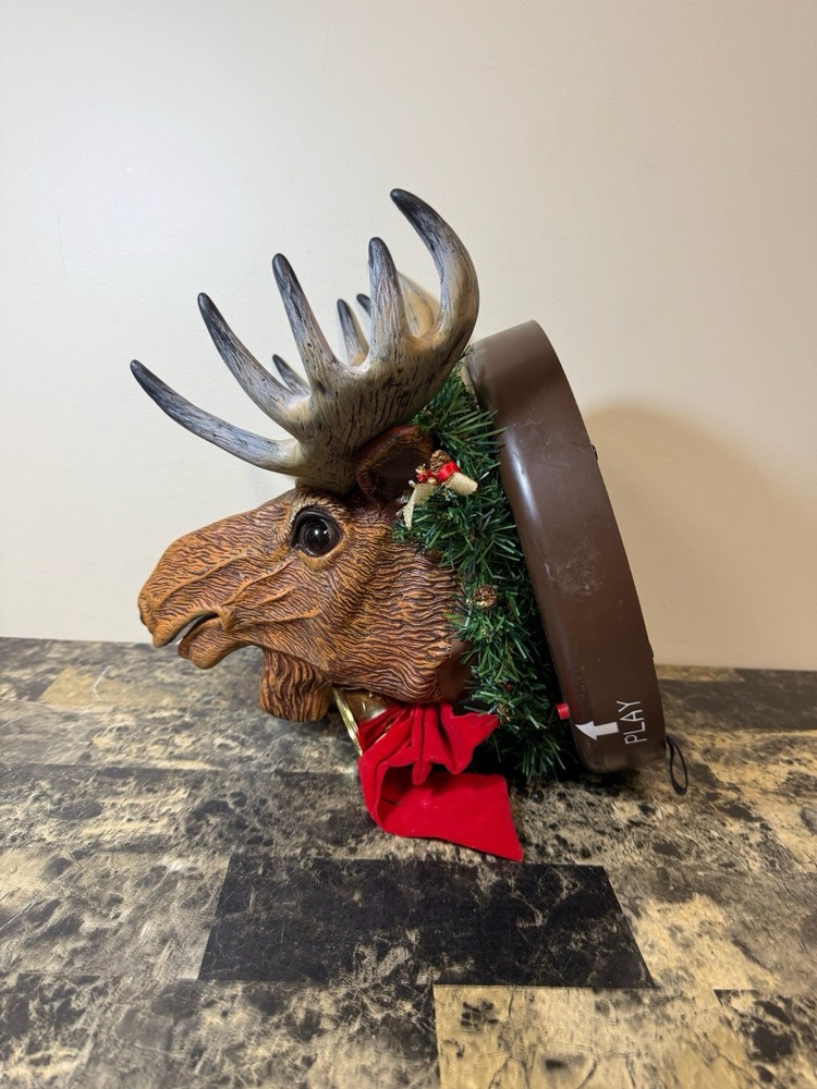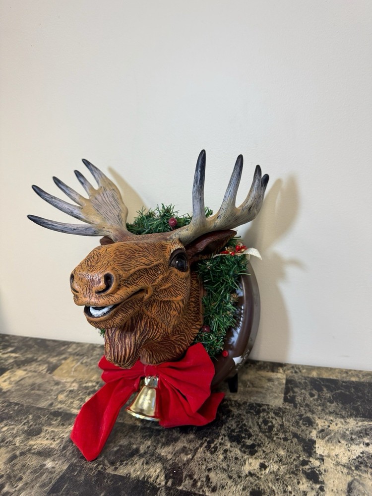 Gemmy presents the Animated Raphie The Singing Christmas Moose, a festive addition to your holiday decor. This charming brown moose is mounted on a wreath and is sure to bring a touch of holiday cheer to your home with its delightful singing tune. The moose is crafted from plastic and has been tested to ensure it works perfectly.