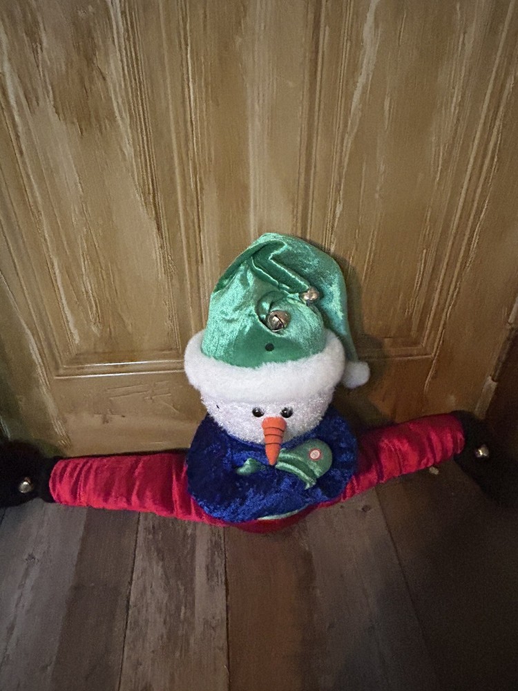 This charming collectible features a snowman in a drafty doorway, with a festive shimmer and chime. Crafted from durable metal, it's the perfect addition to your holiday decor. Whether you're a collector or just looking for a unique gift, this mantlepiece is sure to delight. The intricate design and attention to detail make this an eye-catching piece that will bring joy to all who see it. Whether you're displaying it on your mantle or as part of your holiday decorations, this animated door draft is sure to be a conversation starter. Add it to your collection today!