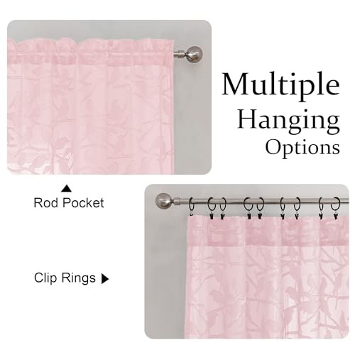 Anji Textured Blush Sheer Curtain 36 inch 38"W x 36"L (Pack of 2) Blush Pink