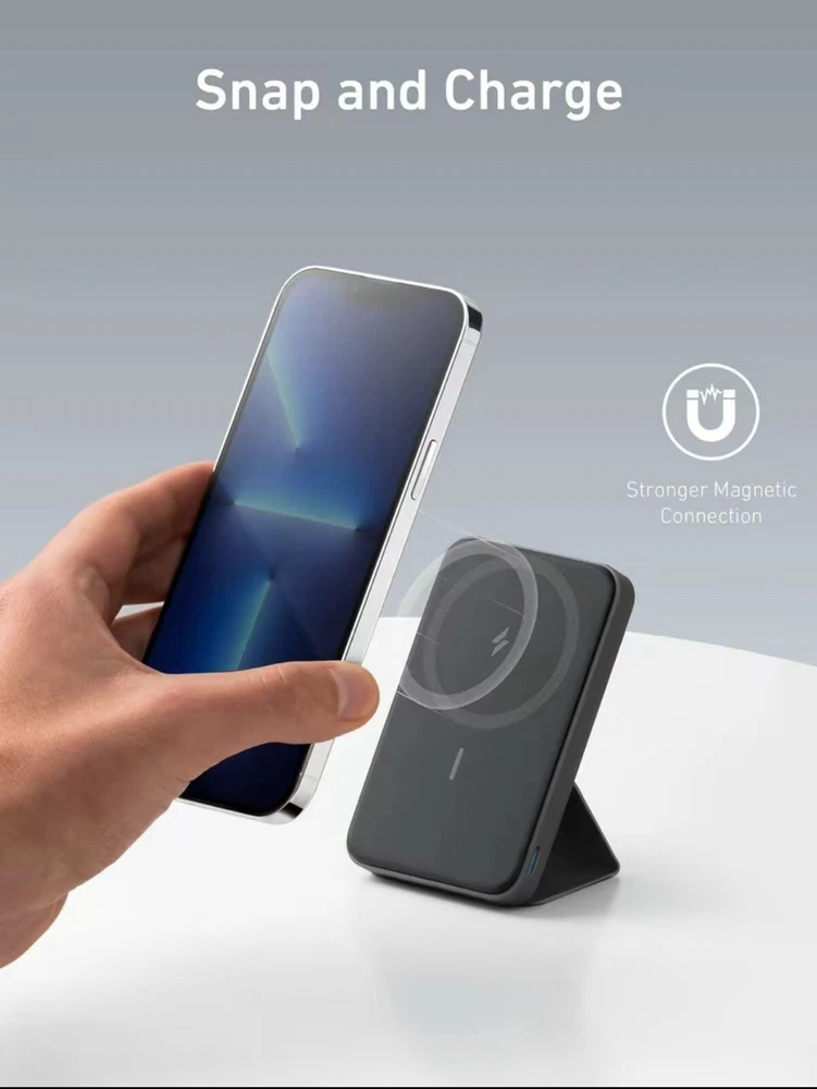 Stay powered up on the go with the Anker 622 Magnetic Battery (MagGo) Foldable Wireless Portable Charger. With a capacity of 5000 mAh, this compact charger is perfect for your Apple devices, compatible with iPhone 12 and 13 series, including the Pro and Pro Max models. Its magnetic design ensures a secure grip and seamless attachment to your phone, making it an ideal accessory for your desk or nightstand. The Anker charger boasts a sleek black matte finish and is crafted from durable plastic. It includes a USB-C cable for easy connectivity and is designed to deliver a 5V output for efficient charging. The device is equipped with a single port for wireless charging and boasts a lightweight profile at just 0.48 lbs, making it effortlessly portable. Enjoy peace of mind with the 2-year manufacturer warranty that comes with your purchase.