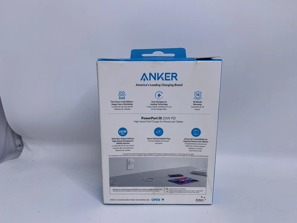 Introducing the Anker PowerPort III 20W PD High-Speed USB-C Wall Charger & 3' USB C To Lightning! This powerful charger is designed to quickly charge your device and has compatibility with a wide range of brands and models. Its sleek white design adds a touch of modernity to your charging setup. With its USB-C connectivity, you can easily connect your device and enjoy a fast charge. This wall charger is perfect for those who need a reliable and efficient charging solution. Whether you're at home or on the go, this Anker charger will keep your device powered up and ready to use.