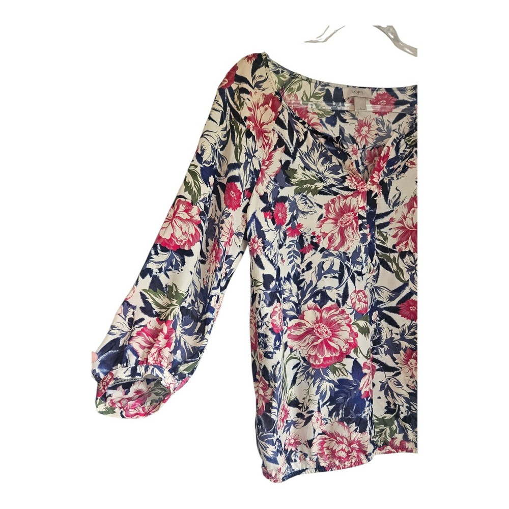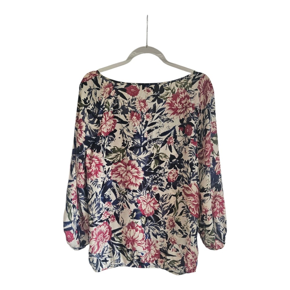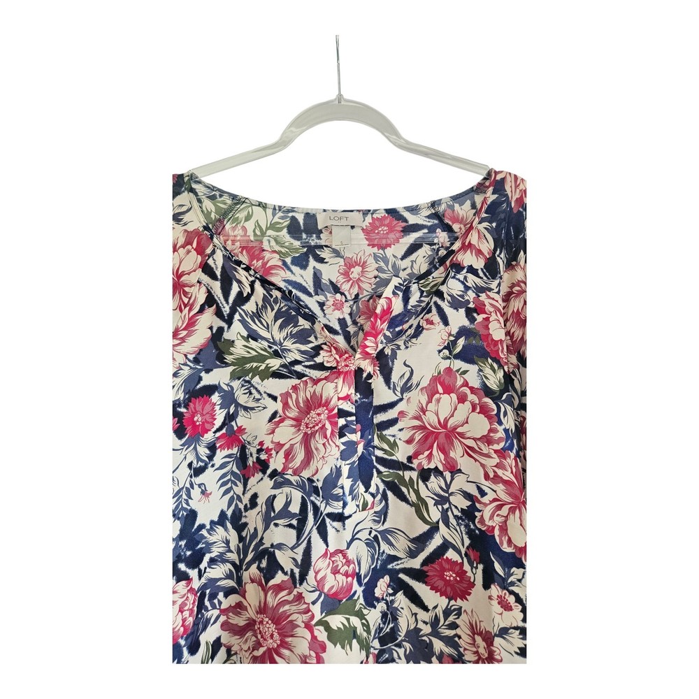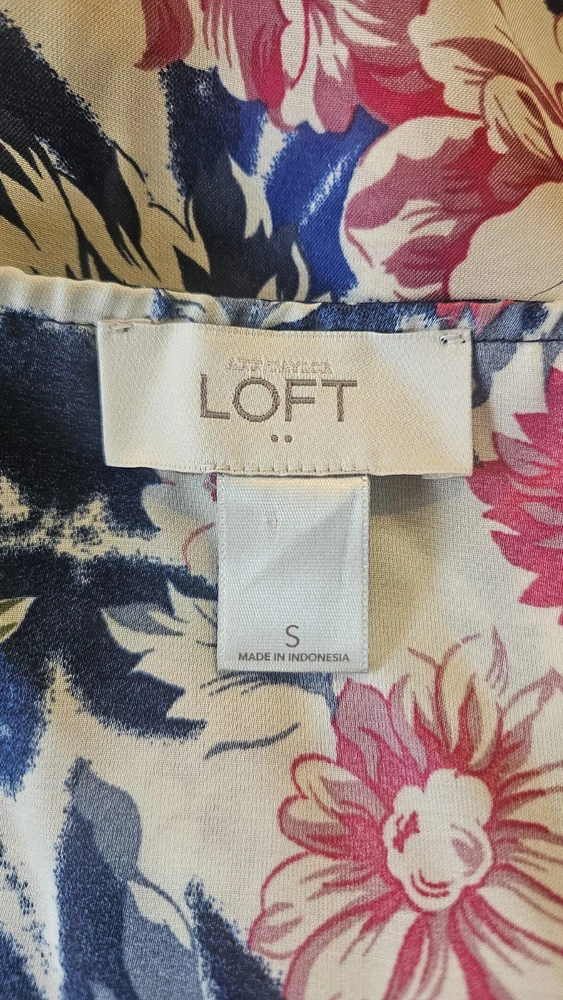 The Ann Taylor LOFT Women's Blouse in size S features a floral pattern with a V-neckline and 3/4 balloon sleeves for a relaxed fit. Made of lightweight polyester material, this pullover blouse is perfect for travel, casual, and business occasions. The elastic waist adds comfort and flexibility, while the multicolor design adds a touch of versatility to your wardrobe. With a split neck and machine washable care, this blouse is a stylish and practical choice for all seasons. Measurements are approximate Armpit-armpit 20 1/2" Shoulder-hem 26 1/2" Please refer to pictures Ships 1-2 days