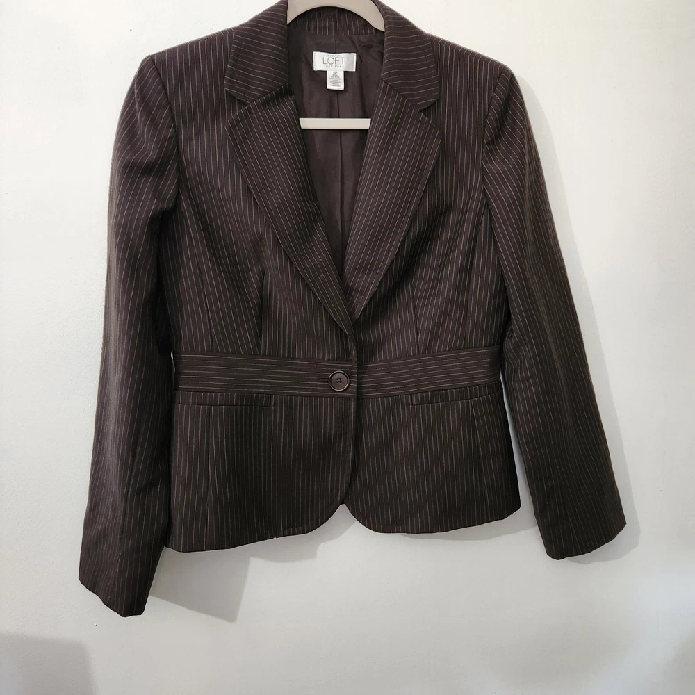 Great pre-owned condition Features- Style: Ann Taylor Loft Women’s Brown Pinstripe Blazer Jacket Size 6P Single Button Y2k Flaws: No obvious flaws We are happy to answer any questions Washing instructions: Machine washable Size: 6P Color: brown tan baby blue Measurements Length :24" Width: 18" Sleeve Length: 23" Tags: Women's brown pinstripe blazer Size 6P blazer jacket Single button blazer Y2K fashion blazer Vintage pinstripe jacket Stylish women's blazer Tailored brown jacket Office wear blazer Chic workwear jacket Lightweight pinstripe blazer Classic blazer for women Versatile women's jacket Trendy Y2K blazer Ann Taylor pinstripe jacket Professional women's attire Size 6 petite blazer Elegant office jacket Smart casual blazer Secondhand Ann Taylor Loyal Smoke free per friendly home