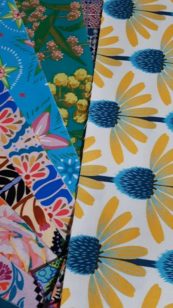 Anna Maria Fabric Strips Pack 100% Cotton fabric lot - More than 2 yards Strips are from 1 to 4 inches wide and 44 inches long Comes from a smoke-free, pet-free environment.