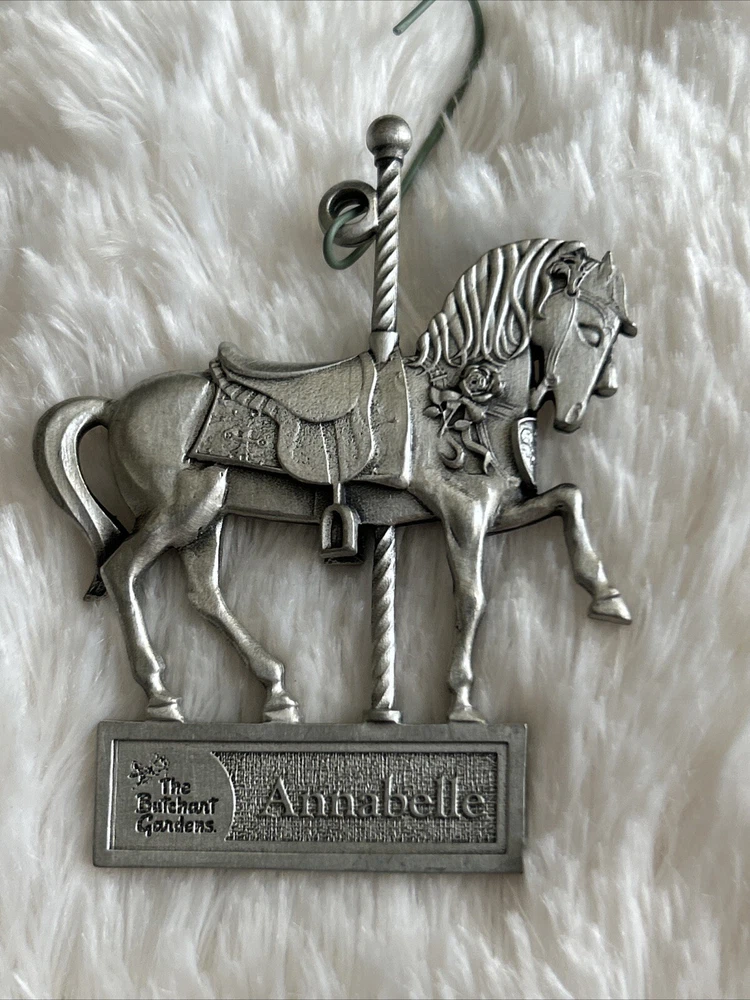 Add a touch of vintage charm to your holiday decor with this beautiful Annabelle metal ornament from The Burchart Garden Carousel collection. Crafted from high-quality metal, this small hanging decoration features a unique design that is perfect for Christmas. Whether you're an avid collector or just looking for a special holiday accessory, this ornament is sure to delight. With its metallic finish and intricate details, this Annabelle ornament is a must-have for any Christmas collection. The set includes one ornament and a hanging decoration, making it easy to display in your home or office. Celebrate the season with this elegant and timeless piece that will surely become a treasured part of your holiday tradition. Excellent condition
