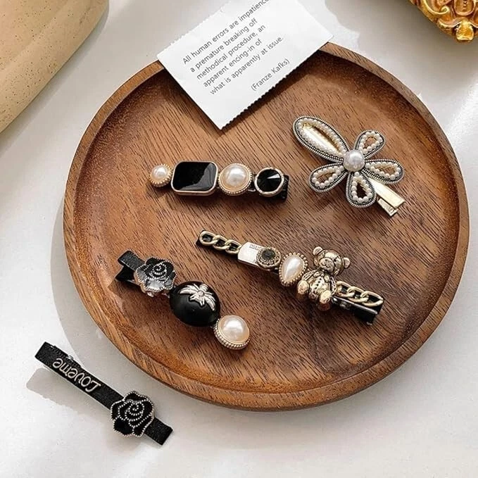 Annacreations Korean Fashion Style Pearl Rhinestone Metal Hair Clips Hair Pin Set (Pack of 11 Pcs) – Stylish Hair Accessories for Women & Girls Add a touch of elegance and style to your hair with this set of 11 stunning hair clips from Annacreations. Featuring a perfect blend of pearls , rhinestones , and metal accents , these hairpins are ideal for any occasion, whether it's a casual day out or a special event. The clips are designed to complement various hairstyles, making them a versatile addition to your accessories collection. Product Features: Elegant Design: Each clip is adorned with a combination of pearls and rhinestones, adding a chic, luxurious touch to your hair. Premium Quality Materials: Crafted with durable metal, these clips are both sturdy and lightweight, ensuring comfort without compromising on style. Versatile and Trendy: Perfect for a variety of hair types, including straight, wavy, or curly hair. Great for styling or adding a decorative touch to any hairdo. Great Value: This set includes 11 different hair clips , giving you multiple options to match your outfits and mood. Perfect Gift Idea: Ideal for women and girls of all ages, making them a fantastic gift for birthdays, holidays, or just as a little treat for yourself. Package Includes: 11 x Hair Clips (as shown in the image) Specifications: Material: Metal, Pearls, Rhinestones Style: Korean Fashion, Elegant, Chic Suitable for: Women & Girls Clip Type: Alligator Clips Why Choose Annacreations Hair Clips? Trendy Korean-inspired design that suits modern fashion. High-quality materials for long-lasting wear. Affordable, stylish hair accessories perfect for everyday use or special occasions. Elevate your look with these chic and stylish hairpins. Order your pack of 11 clips today and add a touch of elegance to your hair styling routine!