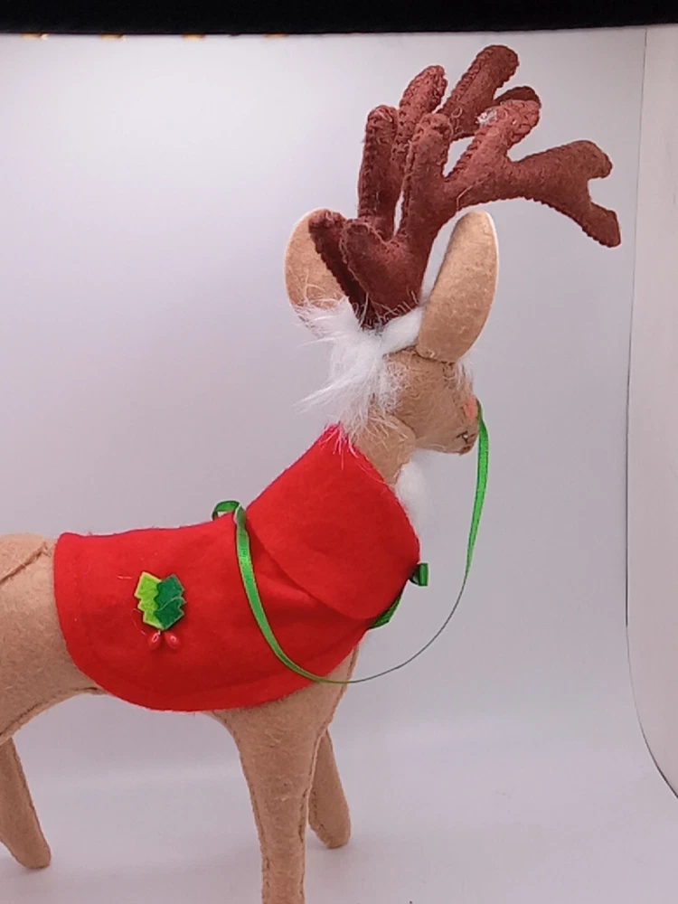 Celebrate the holiday season with this delightful Annalee Santa's Reindeer figurine. Crafted from high-quality fabric, this medium-sized collectible features a cute and cuddly reindeer with a festive Santa Claus hat. Measuring 8 inches in length and 10 inches in height, this AnnaLee brand figurine is perfect for any Christmas tree or holiday display. The retired figurine is a must-have for any collector or fan of Annalee's work. With its intricate details and adorable design, this figurine is sure to bring joy and cheer to any occasion. Add it to your collection today and enjoy its charm for years to come. Please see my other auctions for my other thrift store finds.