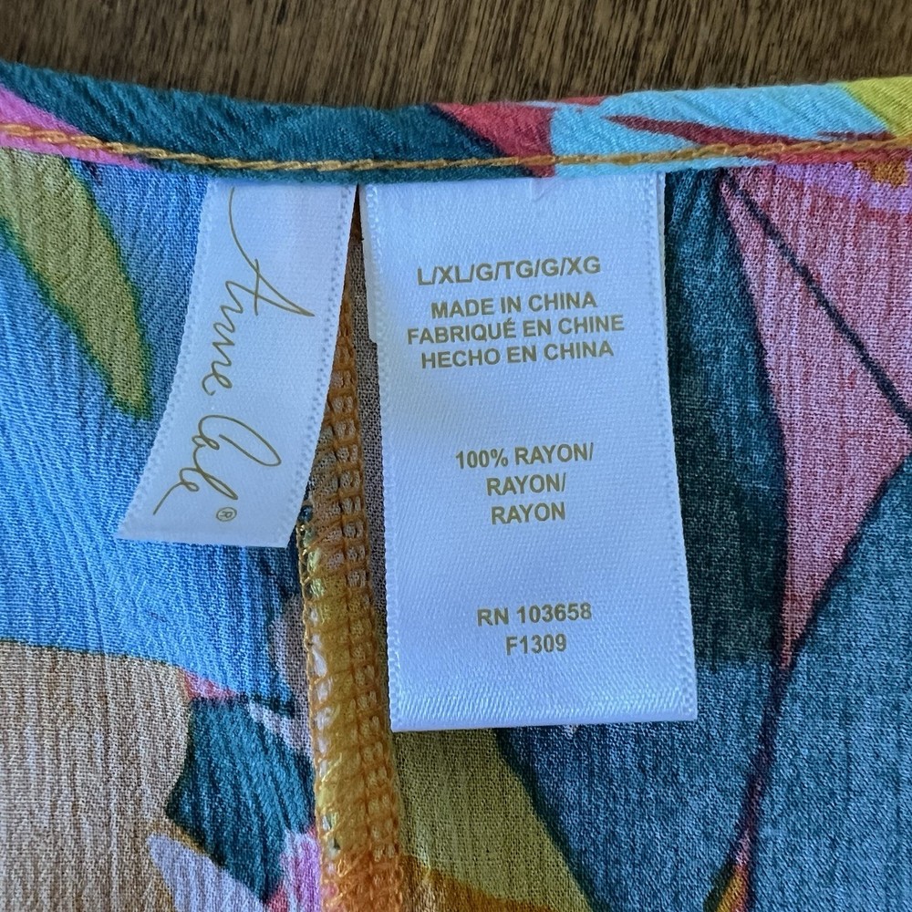 The Anne Cole Women's Printed Plumeria Easy Tunic Cover-up in size L/XL is a tropical and beachy garment perfect for pool or beach days. Made of 100% Rayon, this cover-up features a vibrant multicolor floral pattern, making it a stylish choice for a Resort, Cruise, or Island-themed summer look. With a lightweight and breathable design, this sheer cover-up from the trusted Anne Cole brand is a must-have for any woman seeking a colorful and relaxing swimwear option.