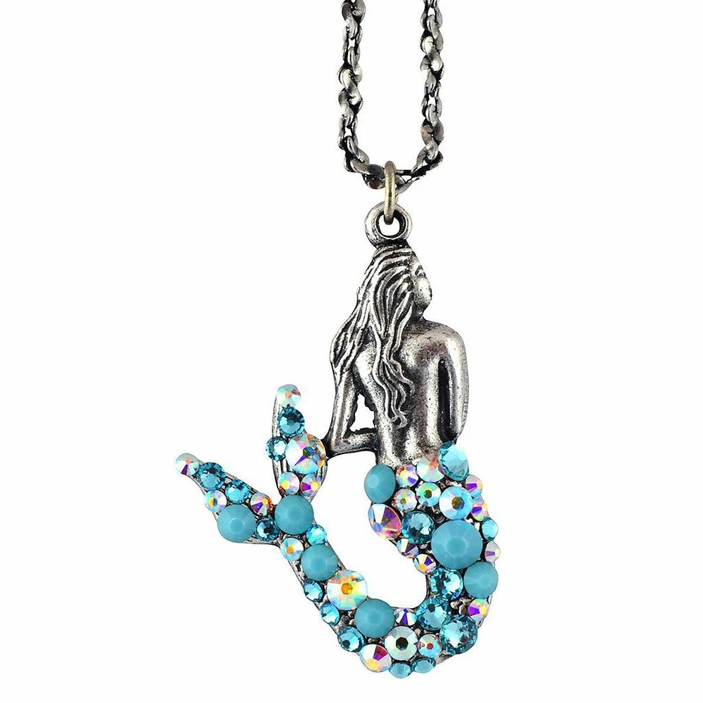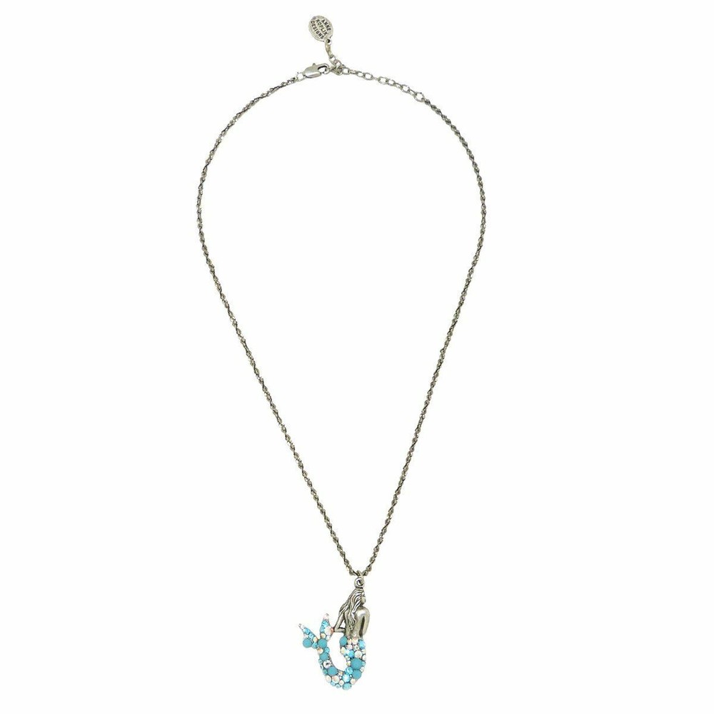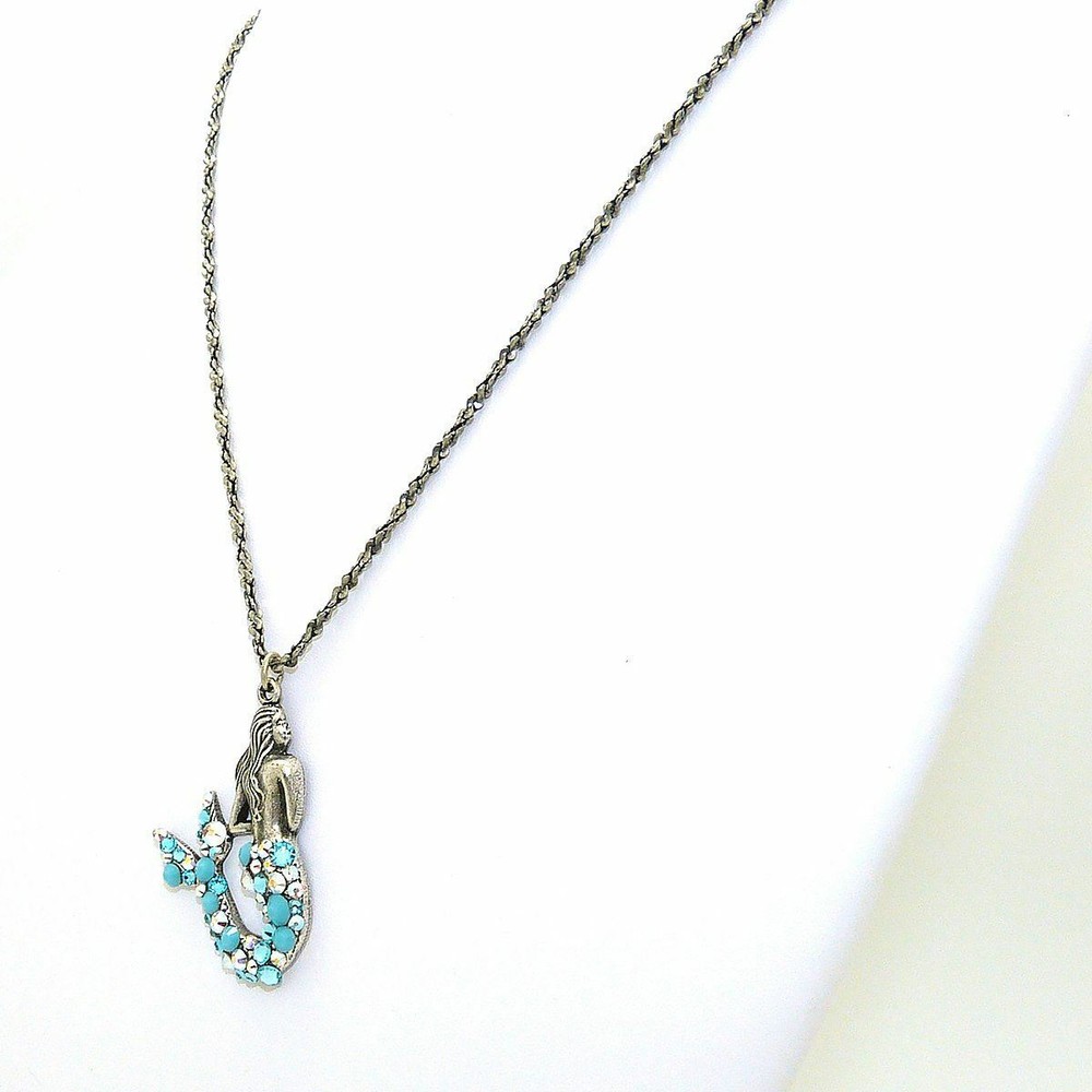 Tales of mermaids have been with us since earliest times. The mermaid on this necklace is encrusted with turquoise, light turquoise and crystal AB jewels by Swarovski. Antiqued sterling silver plated finding and chain Measures Approximately: Pendant 1 1/2” L x 1” W; Chain 16”-18" adjustable Color: iridescent crystal & shades of turquoise 100% lead and nickel free Lobster closure Matching earrings available Handcrafted in America by Anne Koplik Designs Comes in jewelry bag with card - ready for gift giving NS3147ATUR Anne Koplik Designs are proudly handcrafted in their Brewster, NY studio. Delicate and happy - Anne Koplik jewelry is worn by many of Hollywood’s elite. They have been the exclusive provider of jewelry for Dancing with the Stars since Season 5. Koplik jewelry has been featured at the American Music Awards, Daytime Emmy Awards, Tony Awards, The Wendy Williams show , The Home and Family Network, Entertainment Tonight, and The Insider. Fashion editorial coverage includes prominent magazines such as InStyle, Lucky, Modern Bride, Good Housekeeping, and Women’s Wear Daily. Listing and template services provided by inkFrog