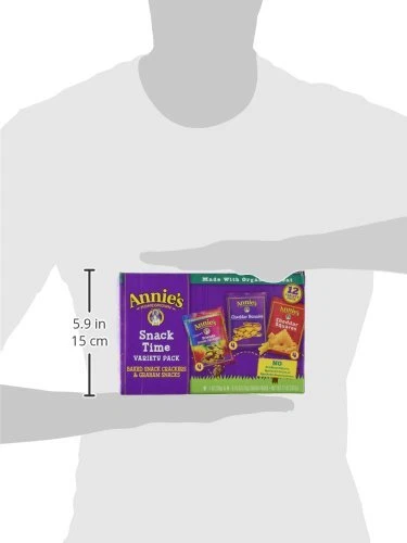 Annie's Organic Variety Pack - Delicious and Nutritious Snack Assortment Product Overview: Indulge in the wholesome goodness of Annie's Organic Variety Pack, featuring a delectable assortment of cheddar bunnies, bunny grahams, and cheddar squares. This pack contains 12 pouches, totaling 11 oz, of delicious and nutritious snacks that are perfect for kids and adults alike. Made with high-quality organic ingredients, these snacks offer a satisfying crunch and irresistible flavor that will leave you coming back for more. Key Features: 1. Organic Ingredients: Annie's Organic Variety Pack is made with certified organic ingredients, ensuring that you're getting snacks that are free from synthetic pesticides, artificial flavors, and preservatives. Each bite is packed with wholesome goodness and goodness. 2. Assorted Snacks: This variety pack includes three of Annie's most popular snacks: Cheddar Bunnies: Crunchy baked crackers shaped like adorable bunnies and flavored with real cheddar cheese. Bunny Grahams: Sweet and crunchy graham crackers in cute bunny shapes, perfect for snacking on-the-go. Cheddar Squares: Bite-sized crackers made with real cheddar cheese for a savory and satisfying treat. 3. Convenient Packaging: The snacks come in individual pouches, making them convenient for packing in lunchboxes, taking on road trips, or enjoying as a quick snack at home or in the office. Each pouch is perfectly portioned to satisfy your cravings without overindulging. 4. Kid-Friendly: Annie's snacks are loved by kids for their fun shapes and delicious flavors, making them a great option for school lunches or afternoon snacks. Plus, parents can feel good about serving these organic snacks to their little ones. 5. Versatile Use: Whether you're craving something savory or sweet, Annie's Organic Variety Pack has you covered. Enjoy them as standalone snacks, pair them with your favorite dips or cheeses, or incorporate them into recipes for added flavor and crunch. 6. Trusted Brand: Annie's is a trusted brand known for its commitment to using organic and natural ingredients in its products. With Annie's, you can trust that you're getting snacks that are not only delicious but also better for you and the planet. Package Contents: 4 pouches of Cheddar Bunnies (3 oz each) 4 pouches of Bunny Grahams (2.5 oz each) 4 pouches of Cheddar Squares (2.5 oz each) Treat yourself and your family to the delightful flavors of Annie's Organic Variety Pack, and snack guilt-free knowing that you're enjoying wholesome and delicious treats. ANNIE'S SNACKS VARIETY PACK: Three snackable, tasty options - Cheddar Bunnies, Bunny Grahams and Cheddar Squares WHOLESOME INGREDIENTS: They're made with no artificial flavors or synthetic colors CERTIFIED ORGANIC: Certified organic ingredients for the goodness you'd expect from Annie's Organic snacks QUICK AND EASY SNACK: Take these snacks to soccer games, field trips and more to satisfy sweet or cheesy cravings CONTAINS: One 11 oz Variety Pack of Annie's Organic Variety Pack, Cheddar Bunnies, Bunny Grahams and Cheddar Squares; 12 pouches Your favorite Annie's Organic Snack Packs come together in one hoppy variety pack. With Cheddar Bunnies, Cheddar Squares and Friends Bunny Grahams, there's a tasty kids' snack for everybunny. Whether you want something sweet or cheesy, this pack has your cravings covered. These are the yummy bunnies that are enjoyed by kids, adults and all ages. Each organic snack comes in a perfectly portable pouch for lunchboxes, soccer games and more. Plus, parents will love that these snacks are made with non-GMO ingredients and have no artificial flavors or synthetic colors. Annie's makes products in over 20 family-friendly categories, from fruit-flavored snacks and cereal to mac and cheese. For busy bunnies and families on the go, we help make life a little easier and more delicious by spreading goodness through tasty foods and kindness to the planet.