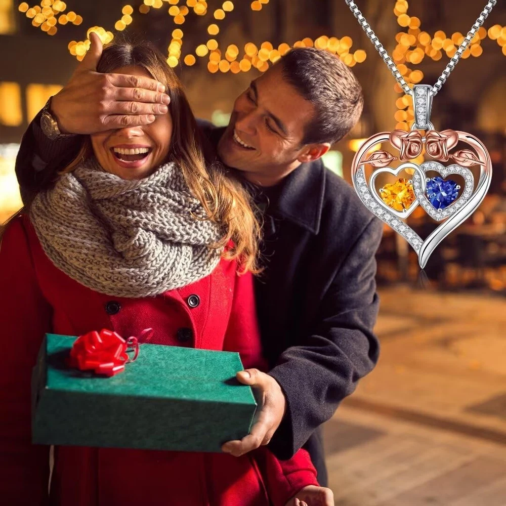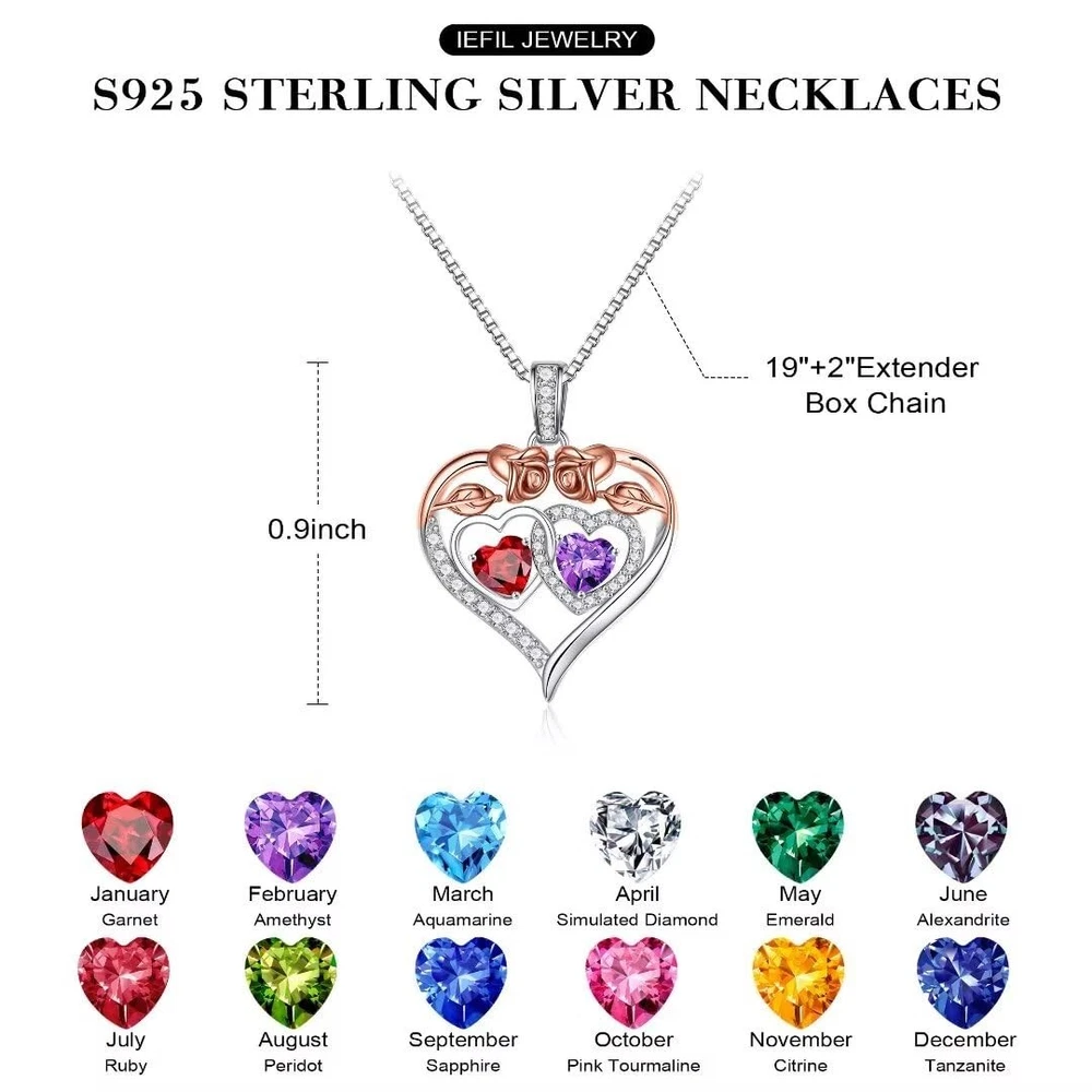 GIFTS FOR WOMEN: The double heart necklace represents the two of you forever tightly held together. This unique rose heart birthstone necklace is the perfect gift for women, mother, grandmas, aunts, sisters, friends, wives. MATERIAL: 925 STERLING SILVER double heart necklace for women rose heart pendant has a lasting layer of protection that minimizes scratches and tarnish-resistant. DAINTY GIFT PACKAGE: The pendant necklace comes with an elegant gift box. No wrapping is needed. Unique Great Mothers Day special gift as a gift for her - your mother, daughter, wife, grandma, sister, Aunt, bonus mom. ROSE FLOWER HEART DESIGN: The unique rose heart design symbolizes eternal love, when she wears this necklace, she will be reminded of your love and all the laughter. AFTER SALES SERVICE: Any question about your Rose Heart Birthstone Necklace, please contact us and we will answer your question within 24hours.