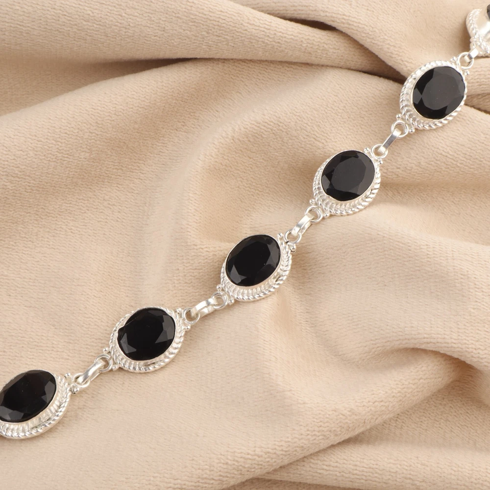 Welcome to Jaipur Silver Gallery Anniversary Gift For Her Natural Black Onyx Gemstone Chain Bracelet 925 Silver Handmade Bracelet, Sterling Silver Bracelet, Black Onyx Bracelet, Handcrafted Bracelet SKU : - JSRB-2-14 Gemstone : - Black Onyx Stone Shape : - Oval Metal : - Sterling Silver Metal Purity : - 925 Bracelet Length : 8.5 Inches Adjustable : _______________________________________________________________________________________ Amazing Properties of Silver ****************************** Tough and Long-lasting: Silver is incredibly strong, built to withstand daily wear and tear as well as tough environmental conditions. Easy to Shape and Design: Silver is like clay for skilled craftsmen, allowing them to create beautiful and intricate designs effortlessly. Great at Conducting Energy: When it comes to heat and electricity, silver is the go-to. It can quickly and efficiently transfer energy, making it ideal for various applications. Keeps Things Clean and Safe: Silver has a natural ability to keep harmful bacteria at bay, making it a reliable choice for promoting cleanliness and well-being. 3 Underrated Benefits Of Silver ****************************** Gorgeous Charm: Silver jewelry shines brightly, enhancing any outfit and fitting everyone's style with ease. Gentle on Skin: Silver is kind to your skin, reducing the chance of allergies and making it a favorite choice for accessories. Healing Vibes: Some believe silver jewelry has a soothing touch, possibly aiding in easing issues like arthritis, anxiety, and the blues. _______________________________________________________________________________________ For Mother's Day Gift For Father's Day Gift For Promise For Valentine' Day For Halloween Party For Christmas Day Gift For New Year Party For Mom For Her _______________________________________________________________________________________ If you need more help or want design tips, just give us a shout! We're lightning-fast in getting back to you. Every single thing we create is made by hand in our special workshop, and we put a whole lot of love and care into every piece. Thank you for stopping by! We're confident you'll have an amazing time shopping with us. We're here to make sure every moment you spend with us is filled with delight and satisfaction. Happy shopping!