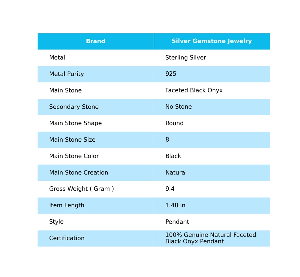 Welcome to Jaipur Silver Gallery Anniversary Gift For Her Natural Faceted Black Onyx Pendant Boho 925 Silver Handmade Pendant, Sterling Silver Pendant, Faceted Black Onyx Pendant, Handcrafted Pendant SKU : - JSCP-17-15 Gemstone : - Faceted Black Onyx Stone Shape : - Round Metal : - Sterling Silver Metal Purity : - 925 Pendant Length : 1.48 Inches Pendant Width : Inches _______________________________________________________________________________________ Amazing Properties of Silver ****************************** Tough and Long-lasting: Silver is incredibly strong, built to withstand daily wear and tear as well as tough environmental conditions. Easy to Shape and Design: Silver is like clay for skilled craftsmen, allowing them to create beautiful and intricate designs effortlessly. Great at Conducting Energy: When it comes to heat and electricity, silver is the go-to. It can quickly and efficiently transfer energy, making it ideal for various applications. Keeps Things Clean and Safe: Silver has a natural ability to keep harmful bacteria at bay, making it a reliable choice for promoting cleanliness and well-being. 3 Underrated Benefits Of Silver ****************************** Gorgeous Charm: Silver jewelry shines brightly, enhancing any outfit and fitting everyone's style with ease. Gentle on Skin: Silver is kind to your skin, reducing the chance of allergies and making it a favorite choice for accessories. Healing Vibes: Some believe silver jewelry has a soothing touch, possibly aiding in easing issues like arthritis, anxiety, and the blues. _______________________________________________________________________________________ For Mother's Day Gift For Father's Day Gift For Promise For Valentine' Day For Halloween Party For Christmas Day Gift For New Year Party For Mom For Her _______________________________________________________________________________________ If you need more help or want design tips, just give us a shout! We're lightning-fast in getting back to you. Every single thing we create is made by hand in our special workshop, and we put a whole lot of love and care into every piece. Thank you for stopping by! We're confident you'll have an amazing time shopping with us. We're here to make sure every moment you spend with us is filled with delight and satisfaction. Happy shopping!