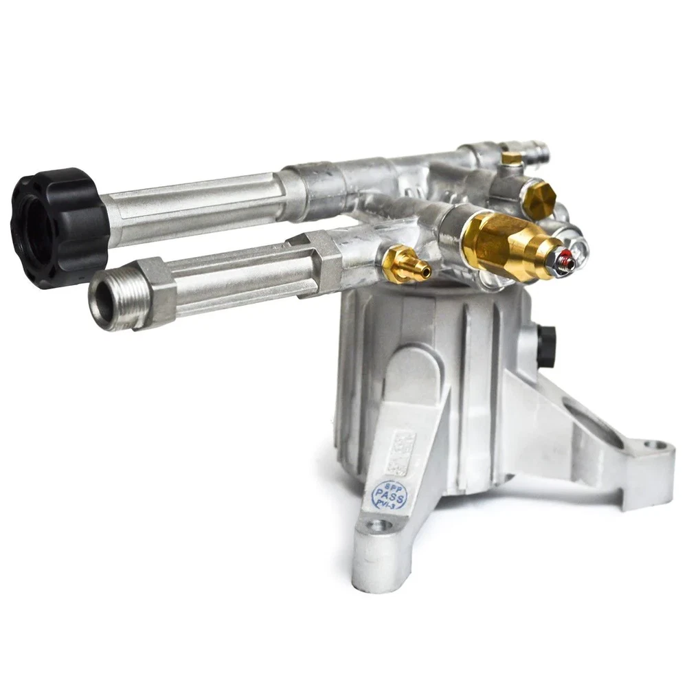 Annovi Reverberi Pressure Washer Water Pump Vertical SRMW2.2G26EZ AR SRMW2.2G26 You are buying (1) brand new Pressure Washer Pump w/ Thermal Release ValveOEM Part Number: RMV2.2G26EZ Annovi Reverberi offers the SRMW22G26-EZ and SRMW22G26-EZ-SX 2,600 PSI triplex plunger pumps in two different mounting configurations. This pump is for vertical gas engine driven units. Please reference the pictures below showing the mounting difference between the two models. Specifications: 2.2 GPM at 2,600 PSI and spins at 3,400 RPM. This pump mounts directly on to the engine shaft by using a keyed hollow shaft connection system. The mounting flange provides a convenient connection to most 7/8” diameter shaft vertical gas engines in 4 - 7 HP (reference the cc to HP chart) and fits most OEM carts. The pump includes a built-in pressure control valve, downstream chemical injection system, EZ start valve and thermal relief valve.Features/Specs:The "S" version has upgraded grade valvesComes with Easy Start Valve (EZ)Thermal relief valve included3-piston alternating volumetric pumps for use on cleaning unitsCan be directly coupled to various types of motorsDifferent delivery connections availableOptional detergent suction systemIntegral regulating valvePump body in die-cast aluminum alloyPistons driven by swash plate mechanismTwo bearing systems, to support the pump shaft and pistonsPistons in hardened and tempered steelPump head in pressed brassDouble gasket sealing systemIntake valves fitted above the pistons for greater efficiency Specifications:Max GPM 2.2Max L/Min 8.3Max PSI 2600MaxBar 173Power EBHP 3.9Bore Dia mm 12Stroke mm 8.3Crankshaft ID Stamp 1Inlet 3/4" GHAOutlet 22mmx1.4 MMax Temp 140° FOil Capacity (oz) 2.2Weight 5.0RPM 3400Shaft Size 7/8"Shaft Version DShaft Type HollowCalifornia Prop 65 - This product can expose you to certain chemicals, which are known to the State of California to cause cancer or birth defects or other reproductive harm. You are buying (1) brand new Pressure Washer Pump w/ Thermal Release Valve OEM Part Number: RMV2.2G26EZ Annovi Reverberi offers the SRMW22G26-EZ and SRMW22G26-EZ-SX 2,600 PSI triplex plunger pumps in two different mounting configurations. This pump is for vertical gas engine driven units. Please reference the pictures below showing the mounting difference between the two models. Specifications: 2.2 GPM at 2,600 PSI and spins at 3,400 RPM. This pump mounts directly on to the engine shaft by using a keyed hollow shaft connection system. The mounting flange provides a convenient connection to most 7/8” diameter shaft vertical gas engines in 4 - 7 HP (reference the cc to HP chart) and fits most OEM carts. The pump includes a built-in pressure control valve, downstream chemical injection system, EZ start valve and thermal relief valve. Features/Specs: The "S" version has upgraded grade valves Comes with Easy Start Valve (EZ) Thermal relief valve included 3-piston alternating volumetric pumps for use on cleaning units Can be directly coupled to various types of motors Different delivery connections available Optional detergent suction system Integral regulating valve Pump body in die-cast aluminum alloy Pistons driven by swash plate mechanism Two bearing systems, to support the pump shaft and pistons Pistons in hardened and tempered steel Pump head in pressed brass Double gasket sealing system Intake valves fitted above the pistons for greater efficiency Specifications: Max GPM 2.2 Max L/Min 8.3 Max PSI 2600 MaxBar 173 Power EBHP 3.9 Bore Dia mm 12 Stroke mm 8.3 Crankshaft ID Stamp 1 Inlet 3/4" GHA Outlet 22mmx1.4 M Max Temp 140° F Oil Capacity (oz) 2.2 Weight 5.0 RPM 3400 Shaft Size 7/8" Shaft Version D Shaft Type Hollow California Prop 65 - This product can expose you to certain chemicals, which are known to the State of California to cause cancer or birth defects or other reproductive harm. eBay integration by