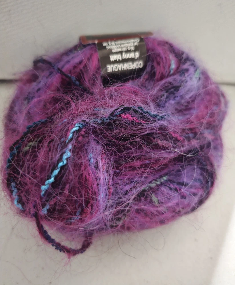 Anny Blatt Mohair blend yarn. Made in France. 50 g 71 yds. Fiber content: 46% Mohair 25% Viscose 24% Wool 5% Nylon Returns accepted within 30 days in same condition as purchased. Buyer pays return shipping. Shipping USPS ground.